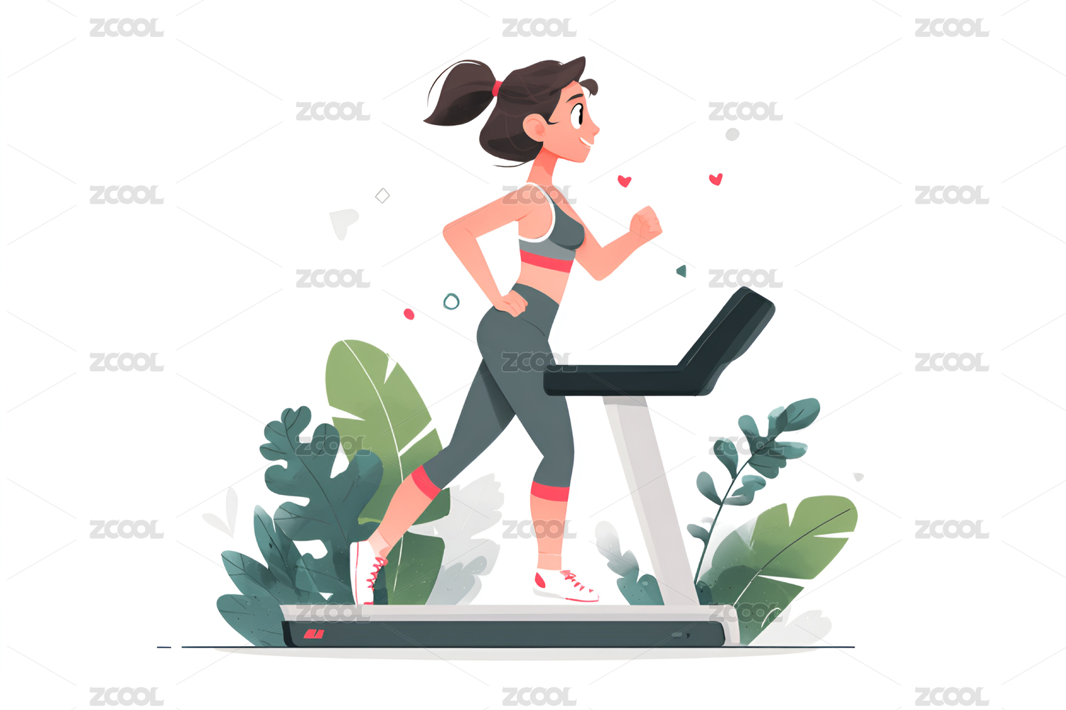 正在跑步机上锻炼的女人插画