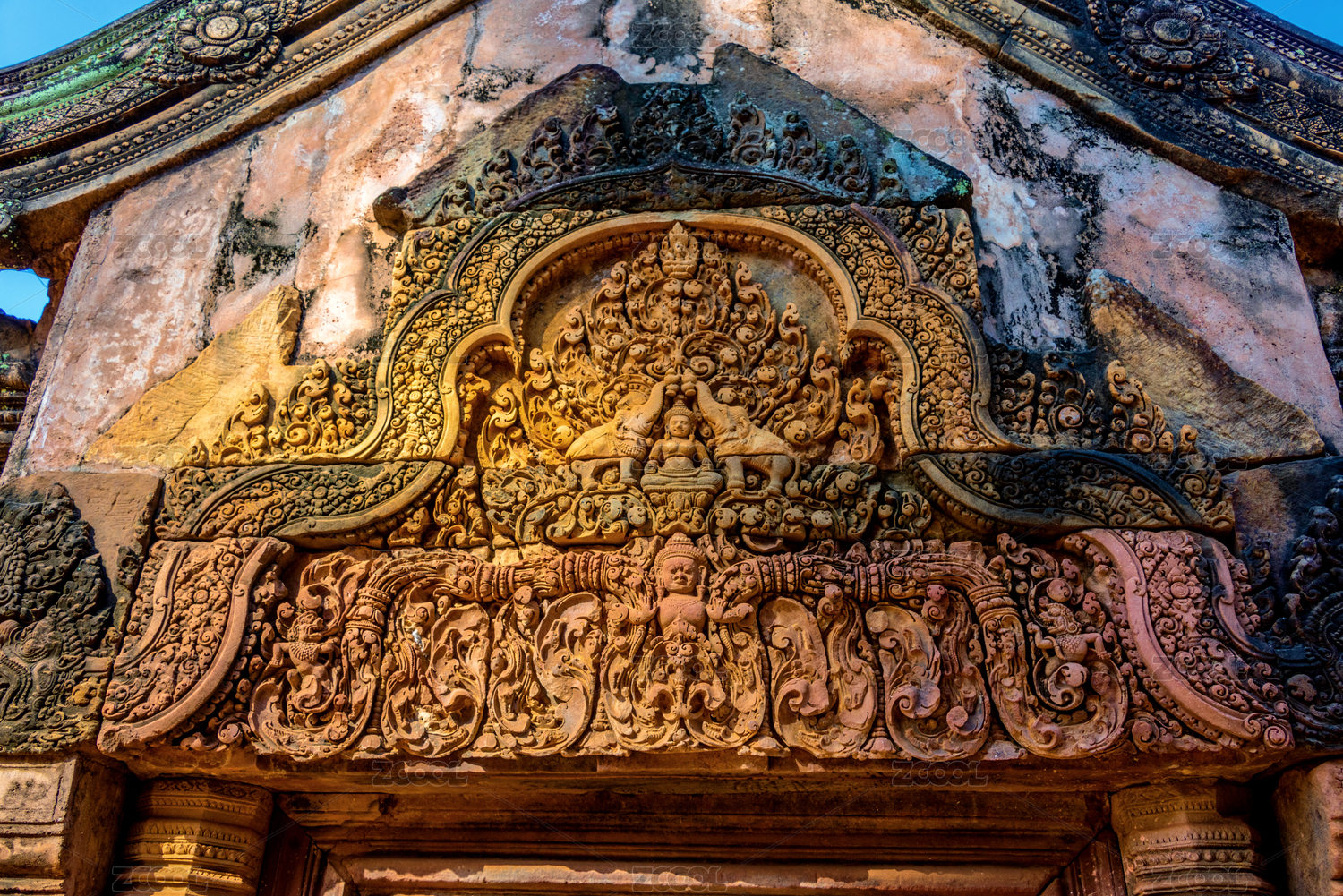柬埔寨暹粒女王宫中精美的门头浮雕