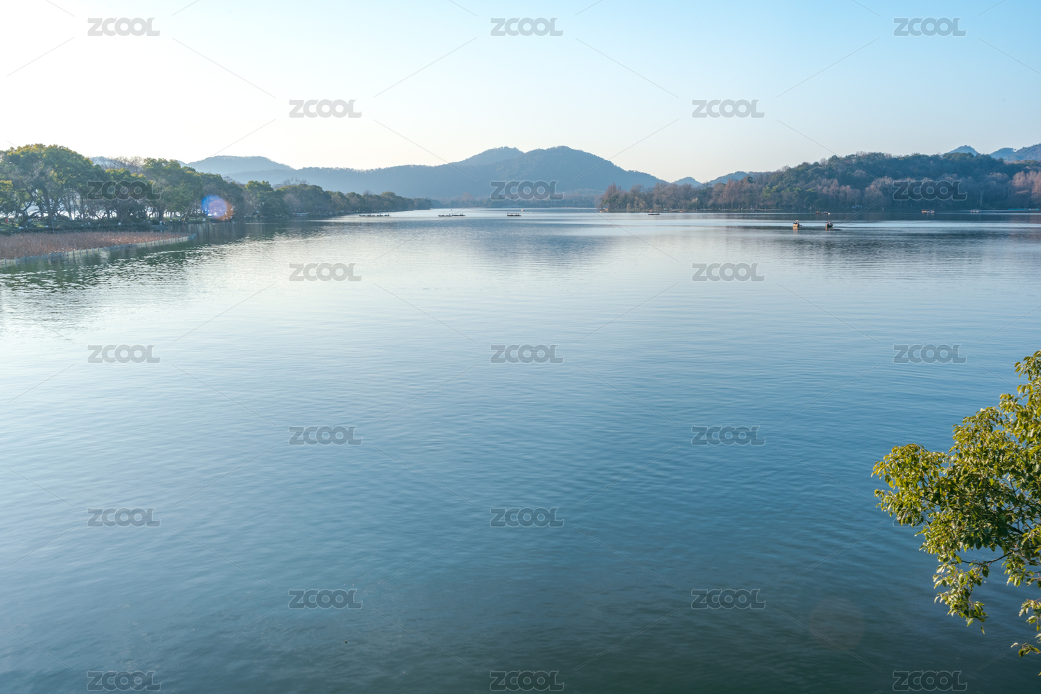 杭州西湖秋天山水景与西湖游船