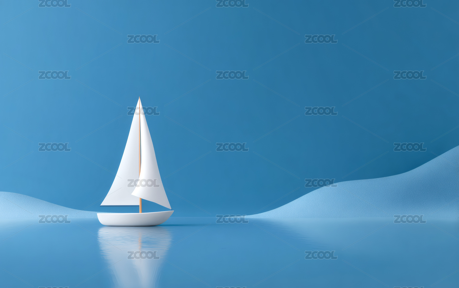 蓝色背景上的白色小帆船
