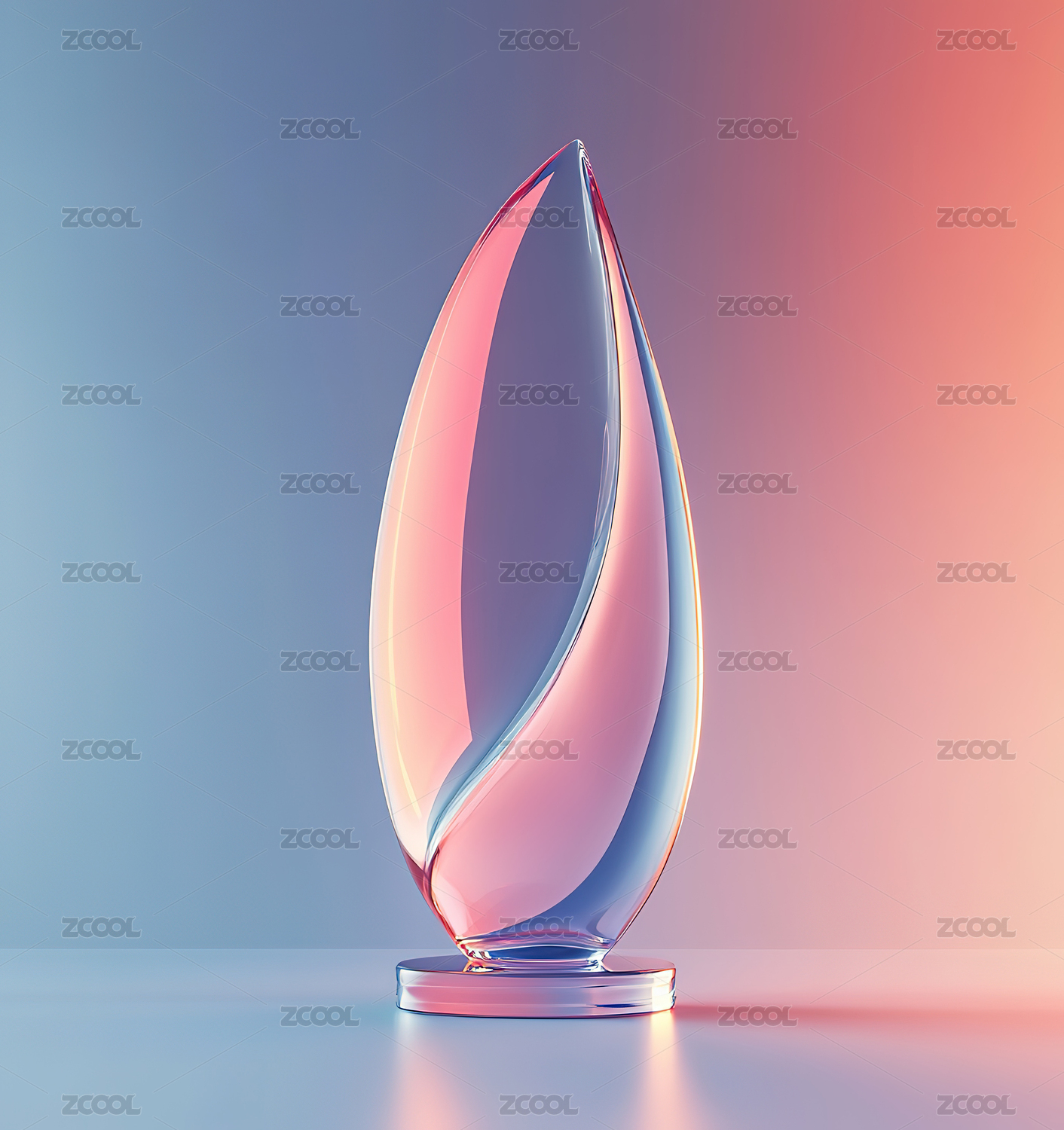 浅色背景下的蓝紫色透明渐变玻璃帆船装饰
