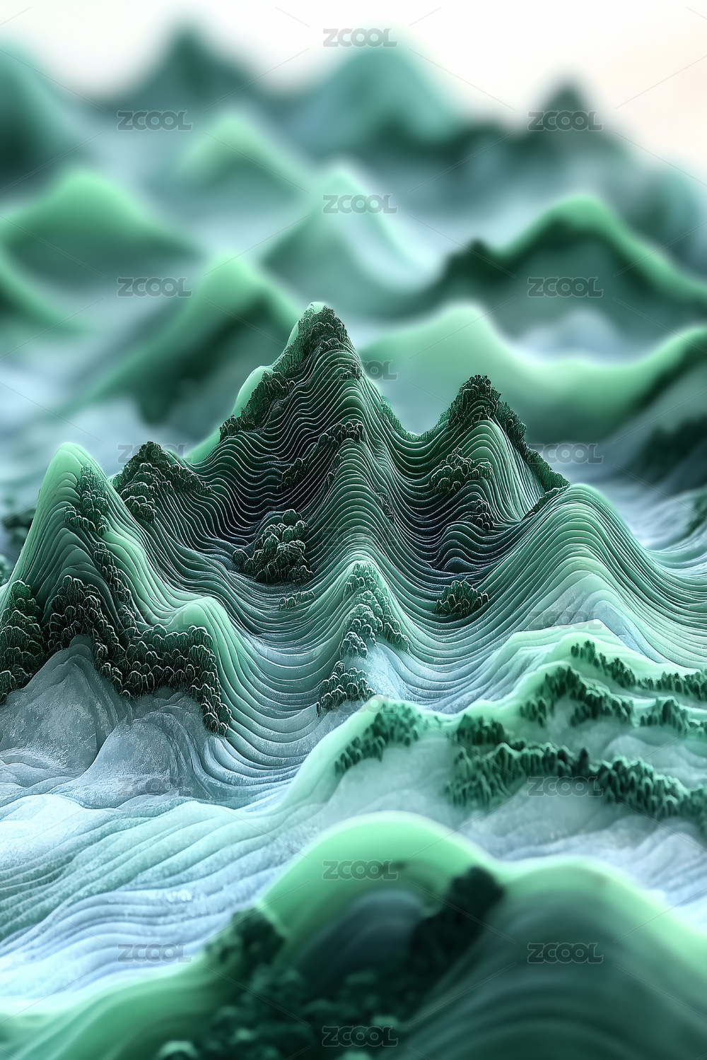 3D立体绿色山脉风景