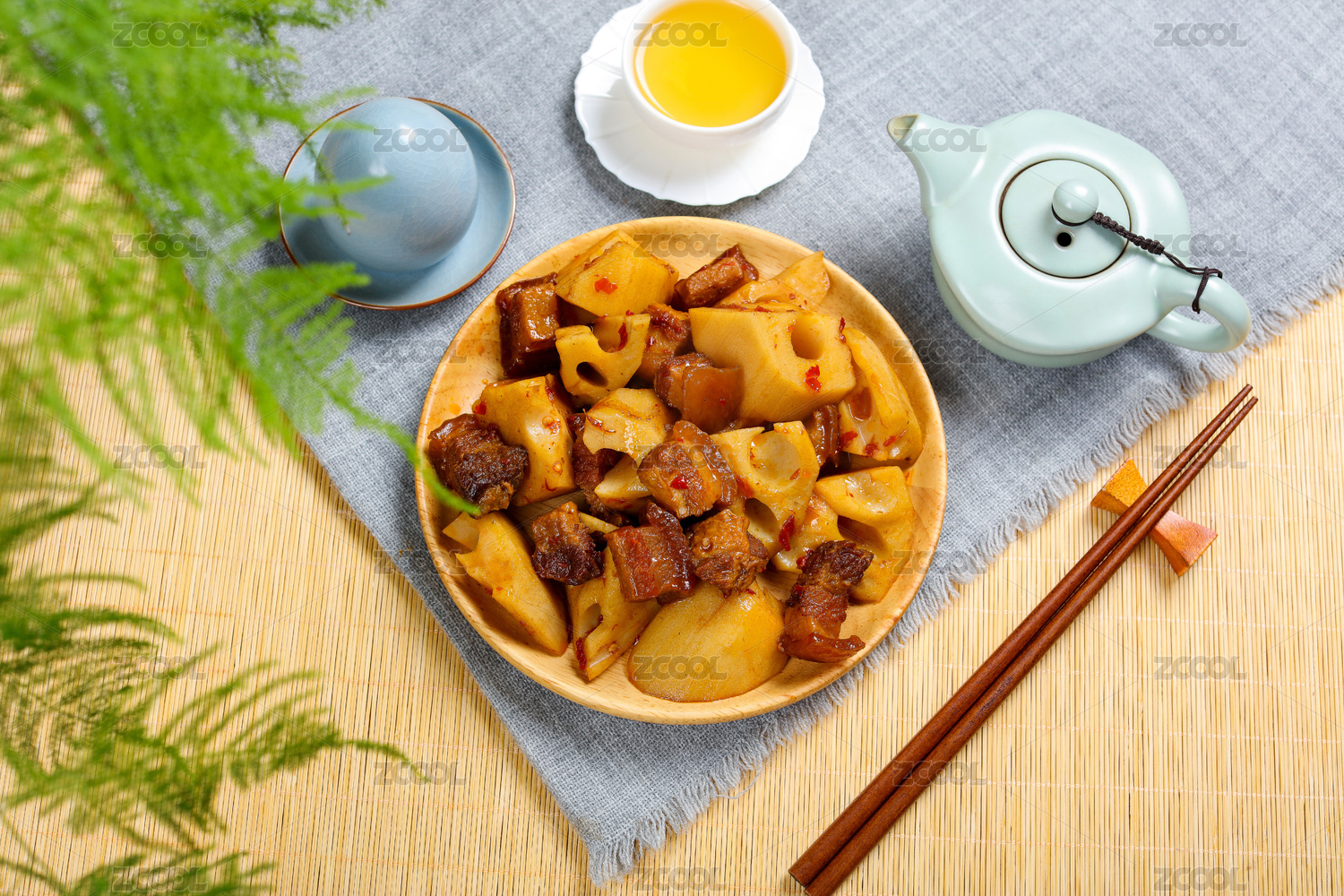 中餐菜肴美食黄焖莲藕红烧肉