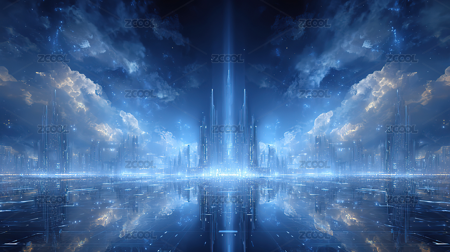 未来,城市,高科技,圆形,场地,建筑,蓝天,白云,透明,数字