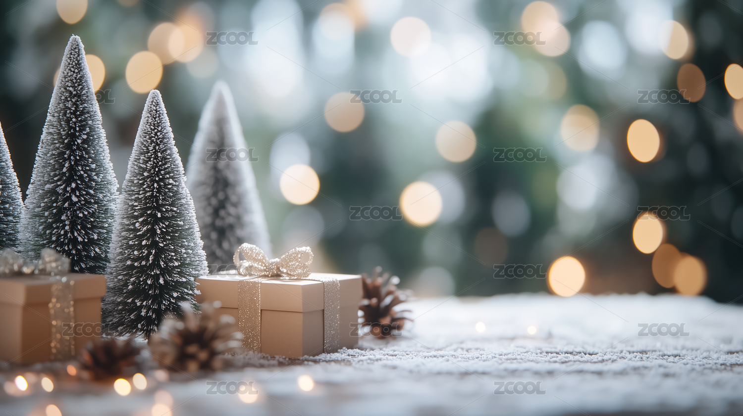 圣诞树与冬季礼物摆设