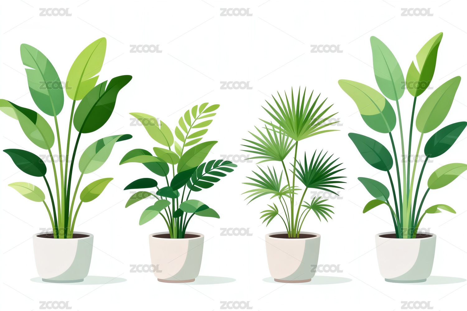 插画龟背竹春季绿植物盆栽大叶子草海报背景