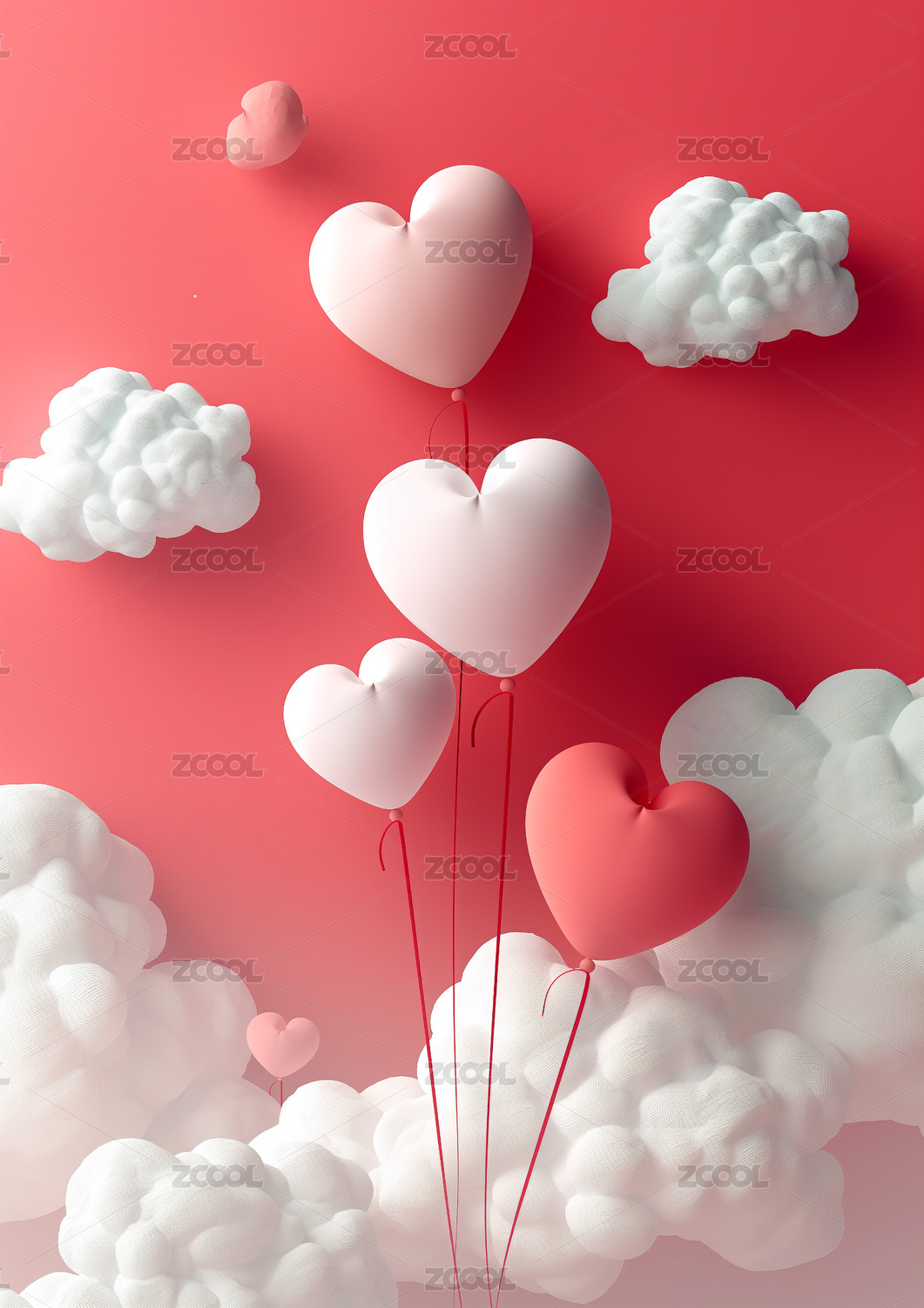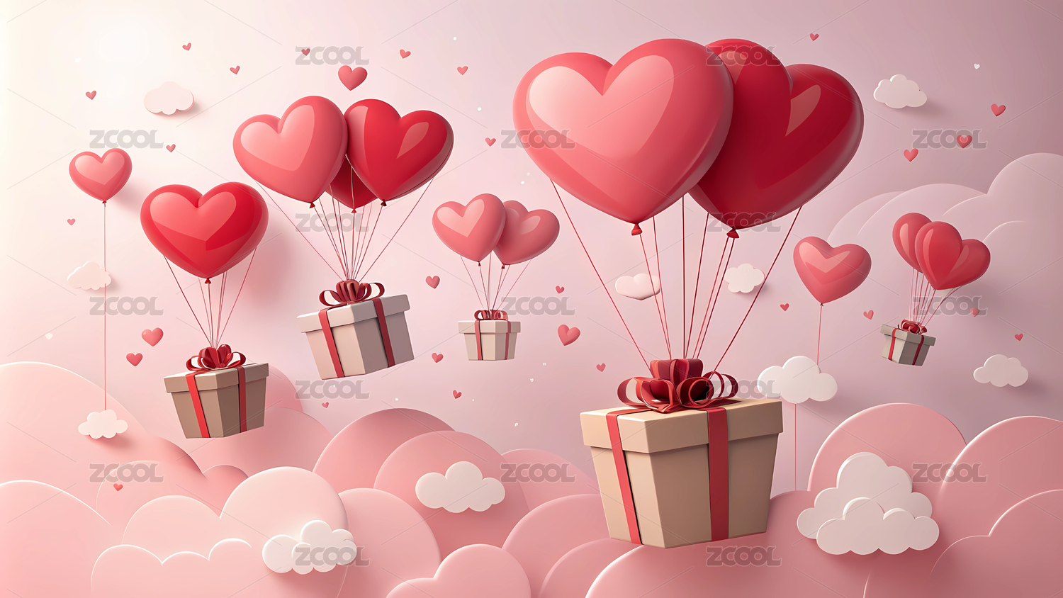 红色粉色爱心气球礼物盒节日气氛背景环境