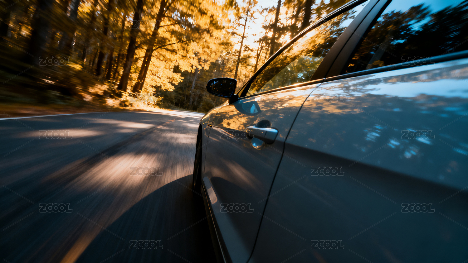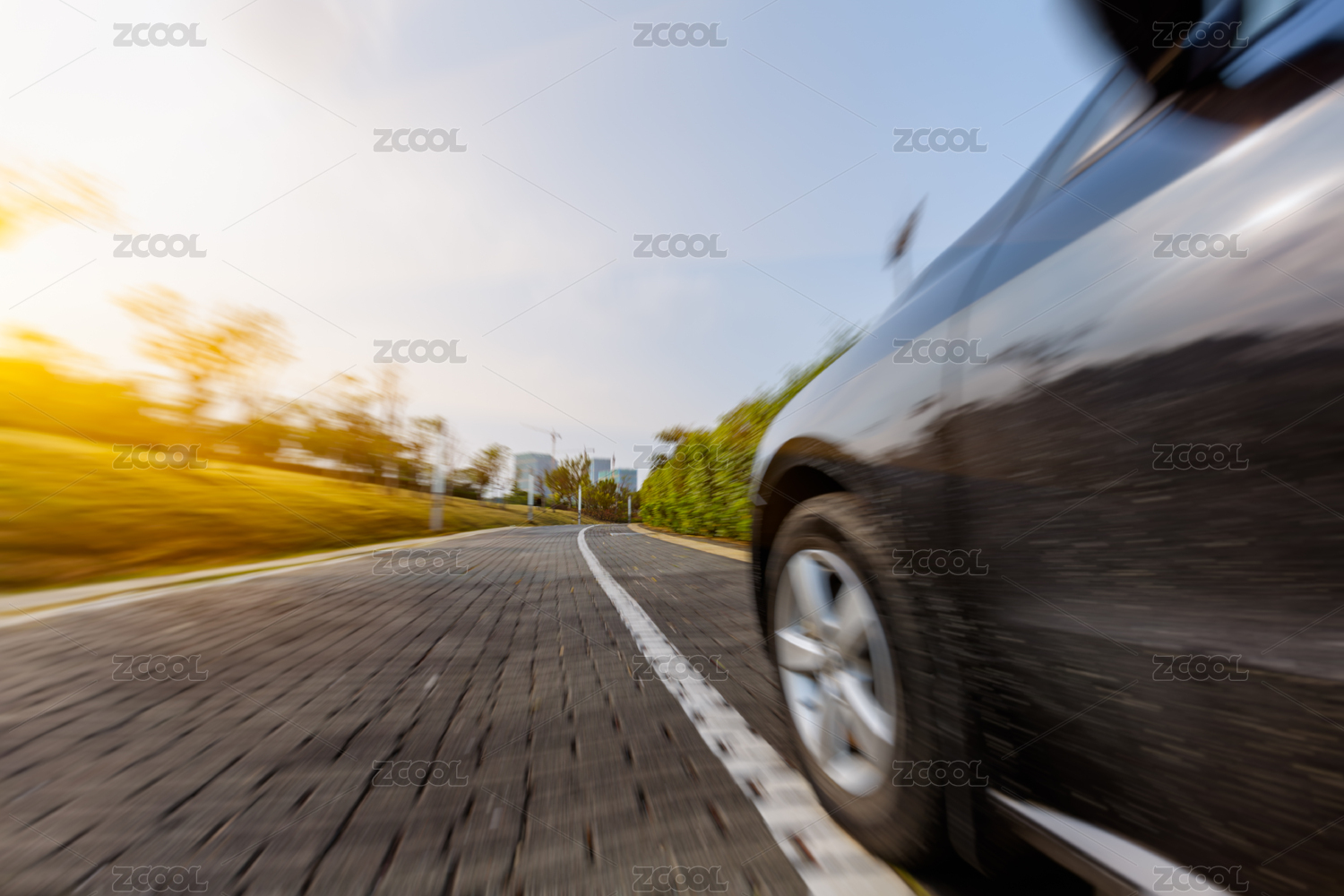 一辆汽车停在郊外一条刚建设好的崭新公路