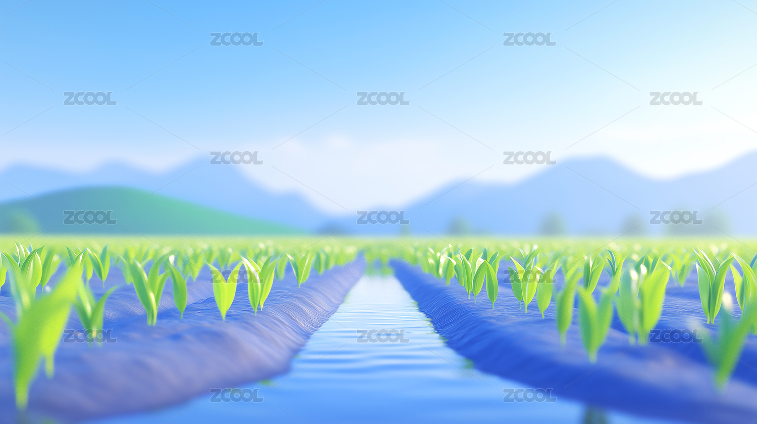 户外湿地草原水面产品展示背景3D渲染