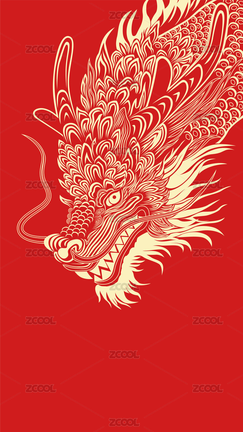 龙年福字云纹理纸质红包封面艺术字矢量插画