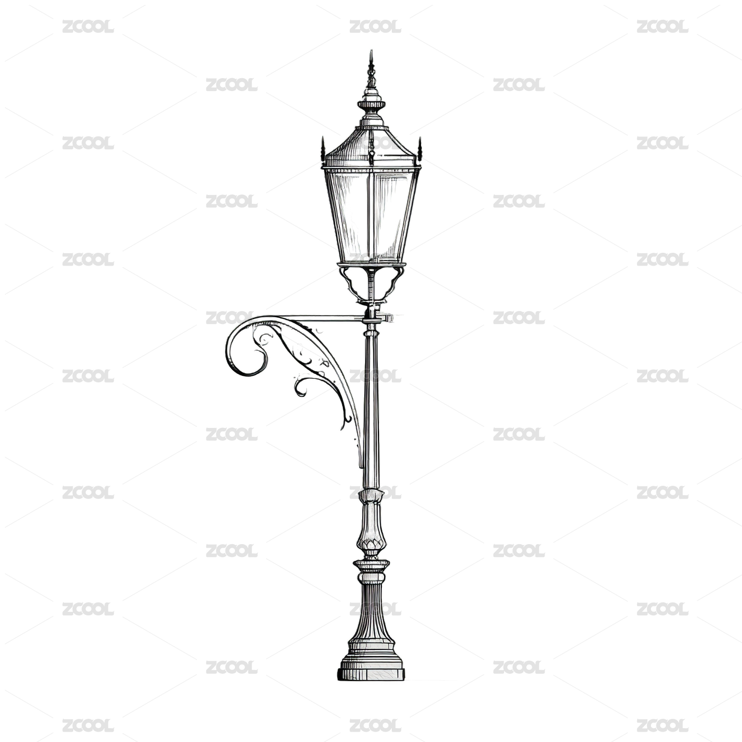 复古风格金属街道标识牌带华丽卷草纹和灯