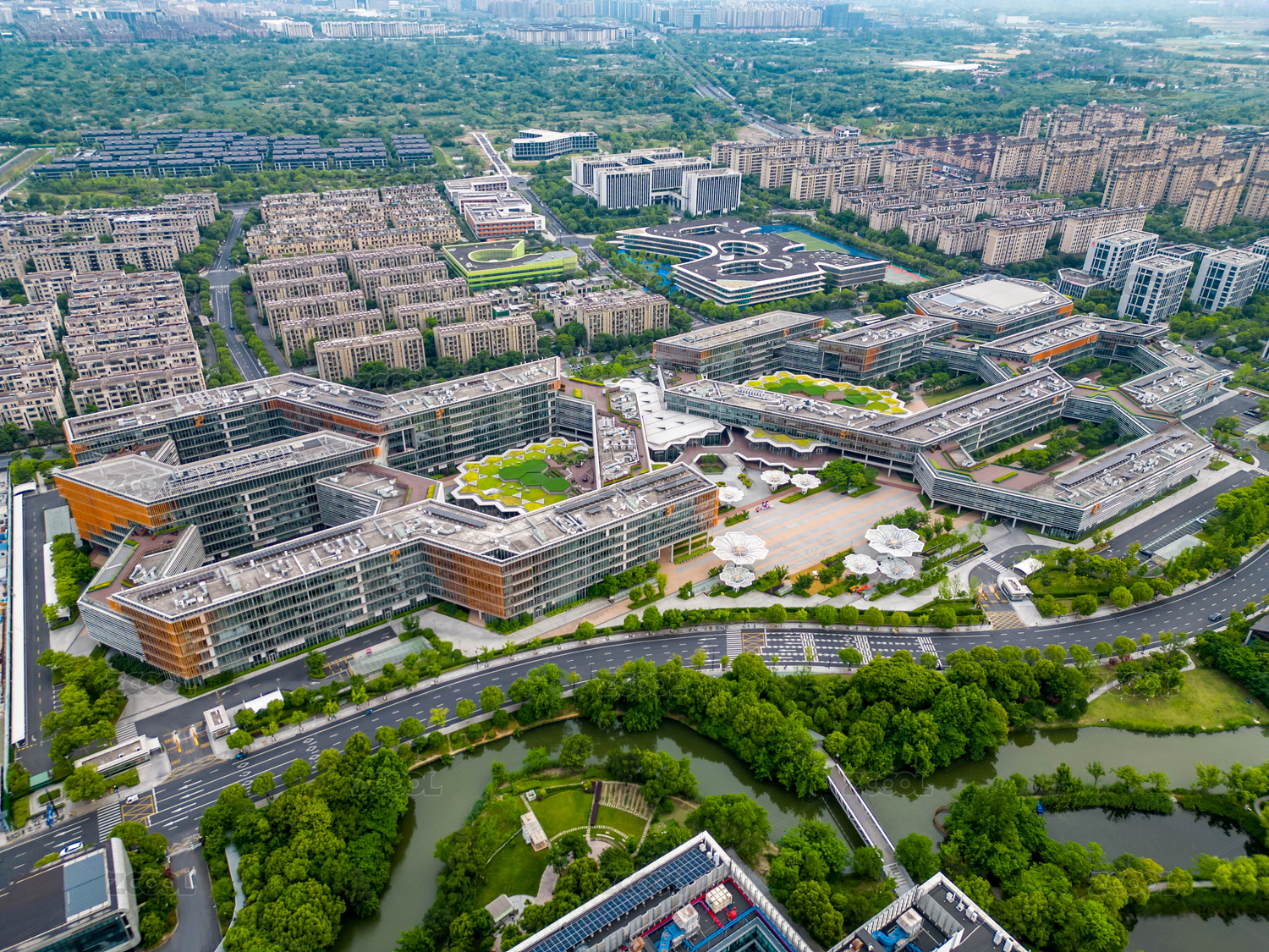 无人,户外,杭州,建筑,城市,航拍视角,夏天,阿里巴巴西溪园区,中国,阿里巴巴