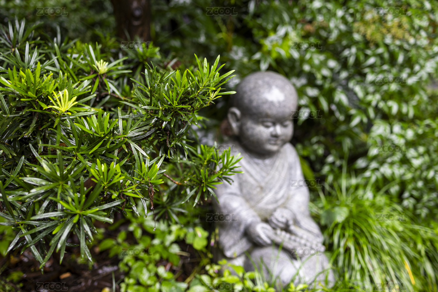 中式庭院花园布置禅意沙弥小和尚景观摆件
