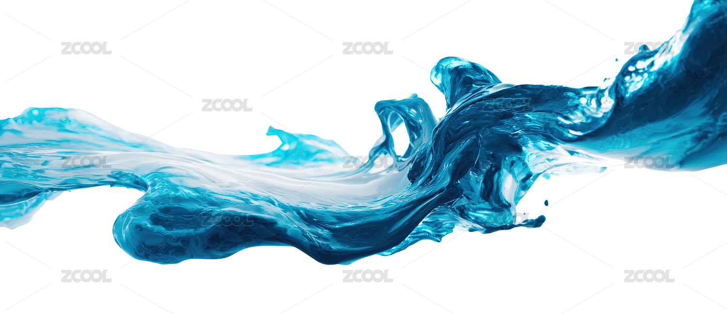 白色背景上溅起的蓝色液体