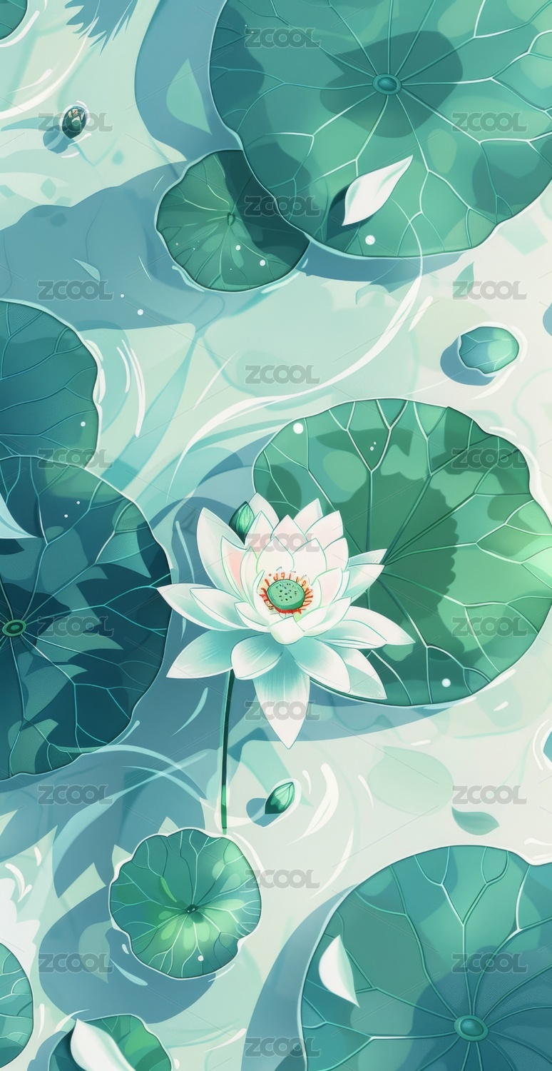 夏日荷花荷叶卡通小清新国风小暑节气插画
