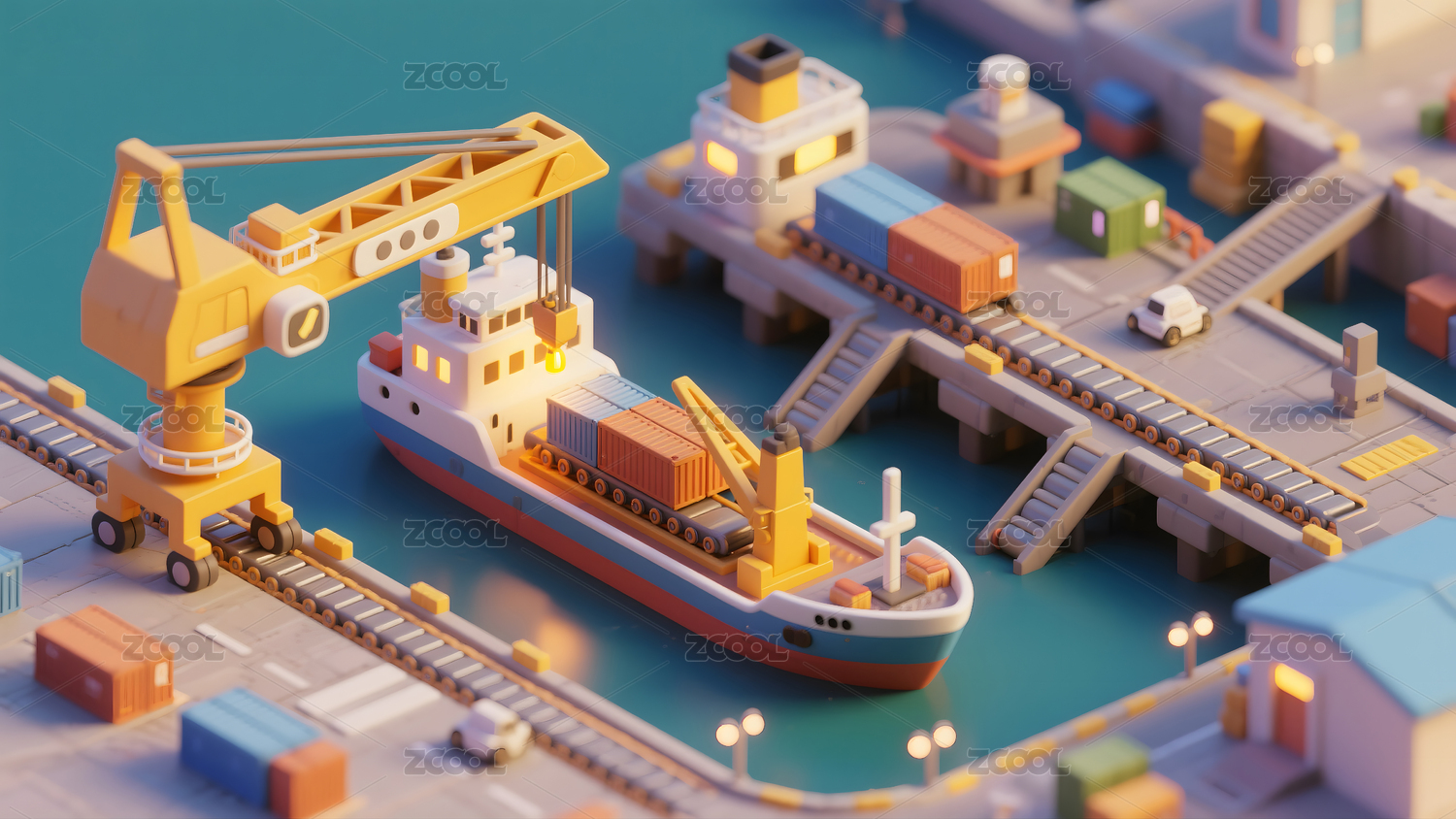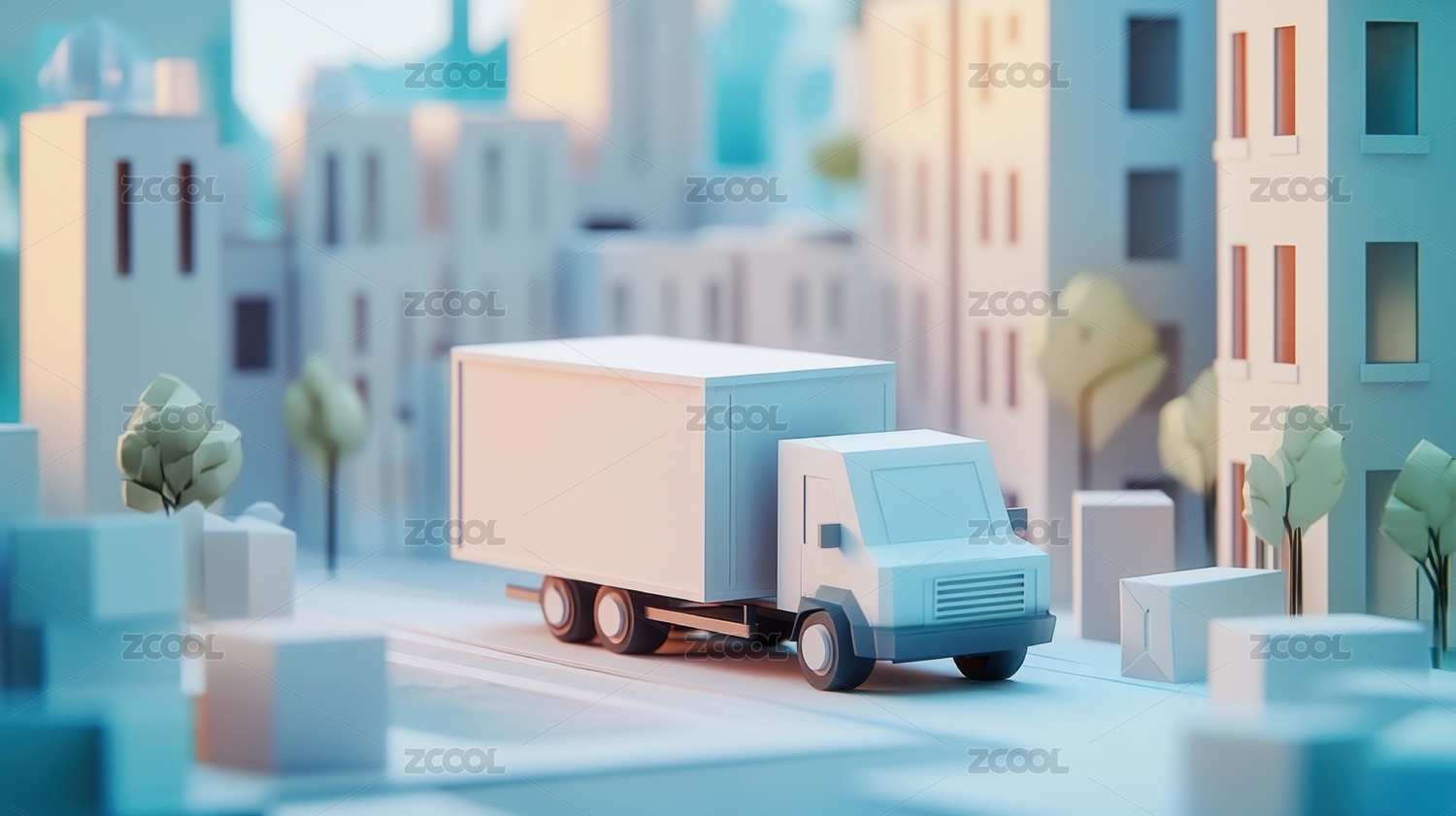 卡通3D物流车道路行驶系列插图