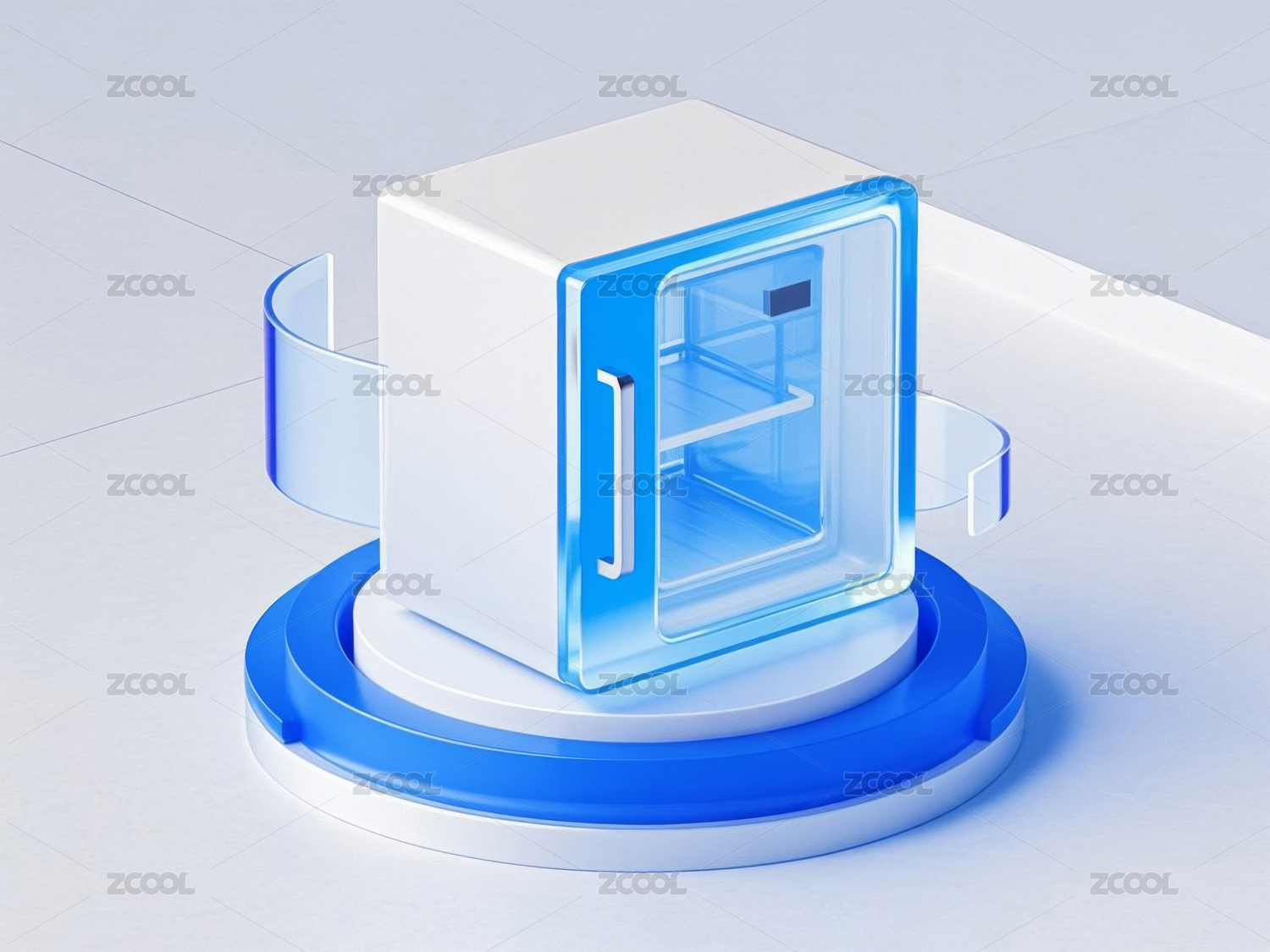 蓝色透明冰箱展示