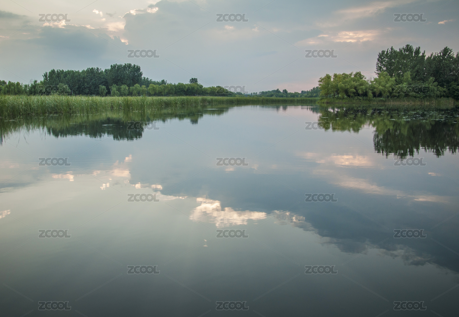 晴天里中国微山湖上的湖面和远处的芦苇荡湿地