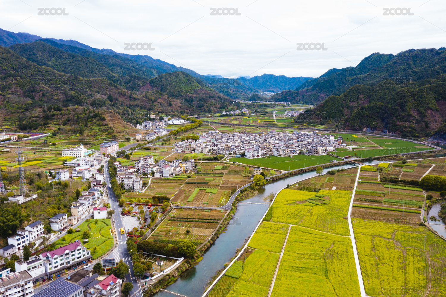 浙江淳安县梓桐镇春天航拍