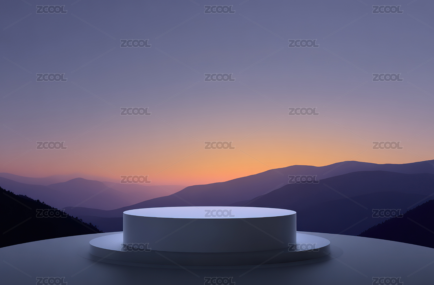 日落山景中的白色圆台