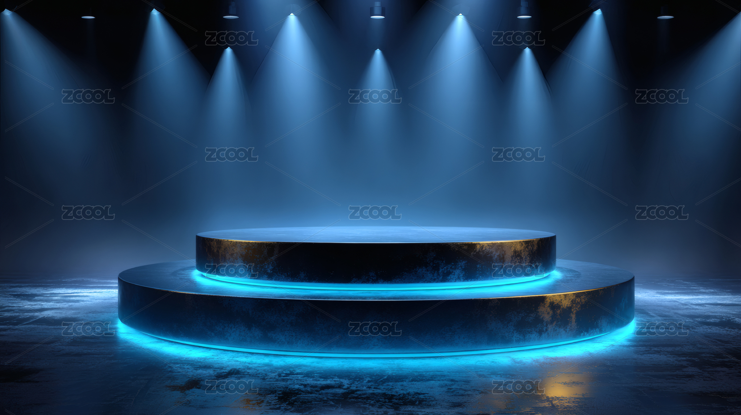 舞台,聚光灯,霓虹灯,灯光,投射,光线,反射,讲台,底座,圆形
