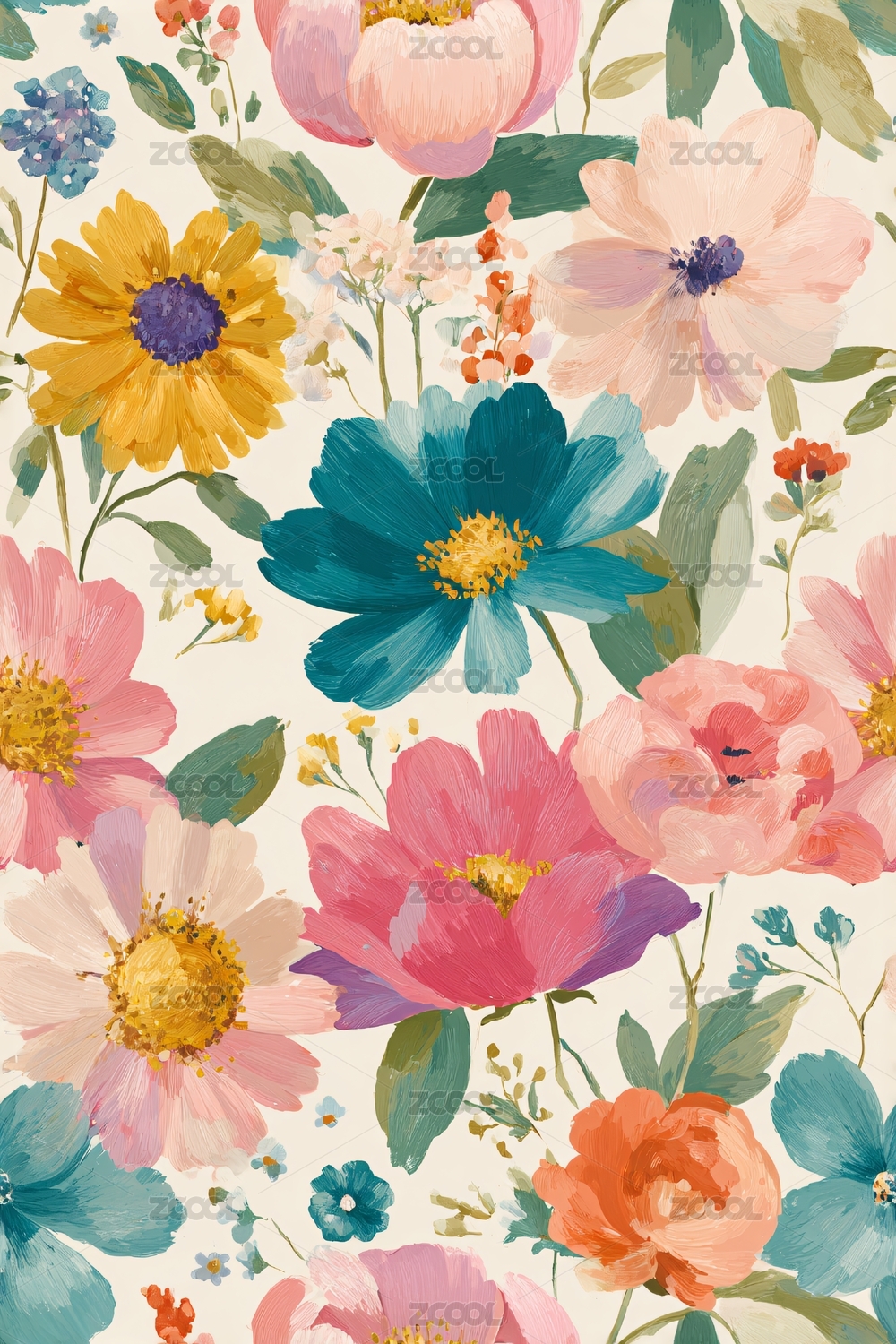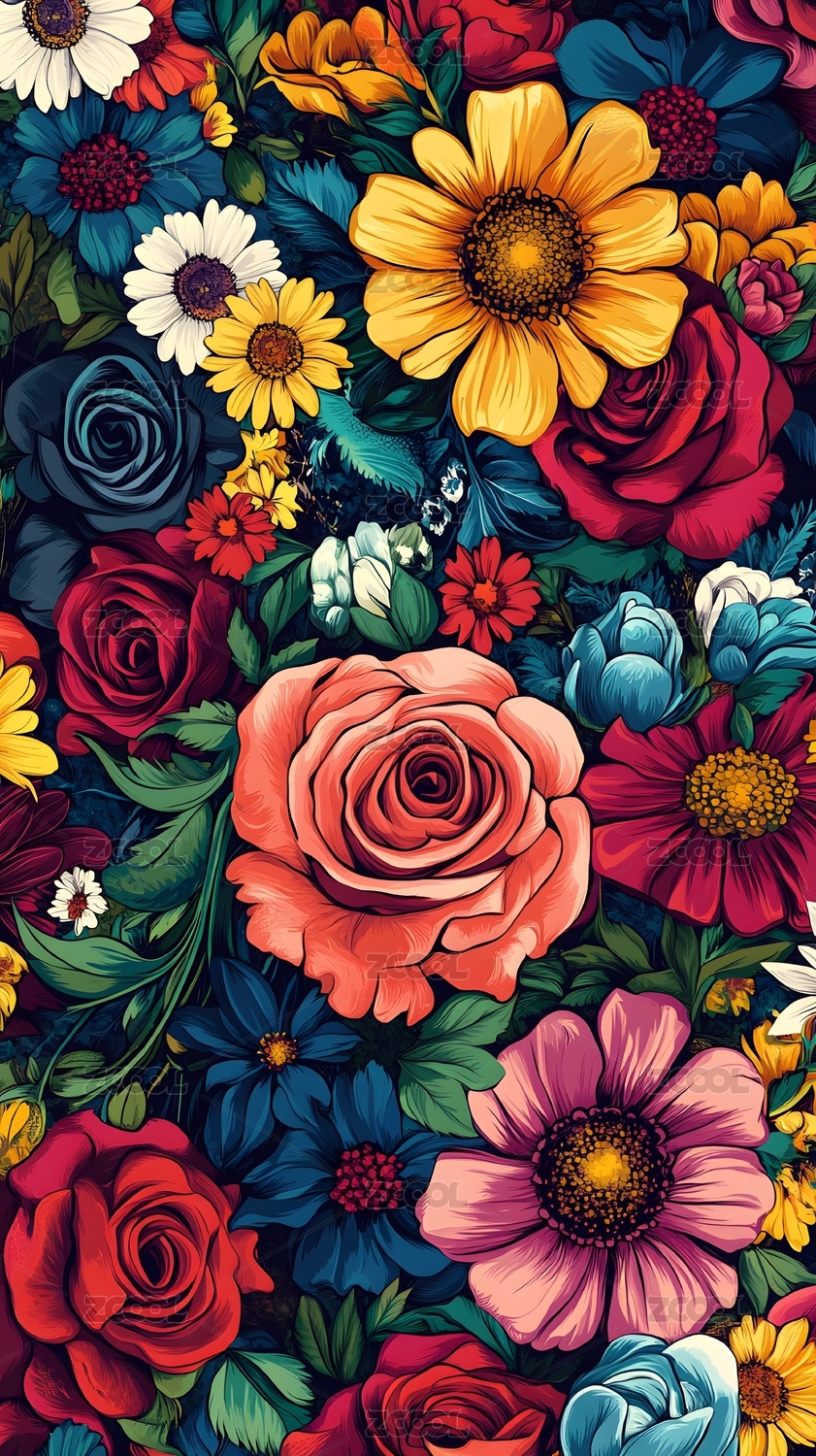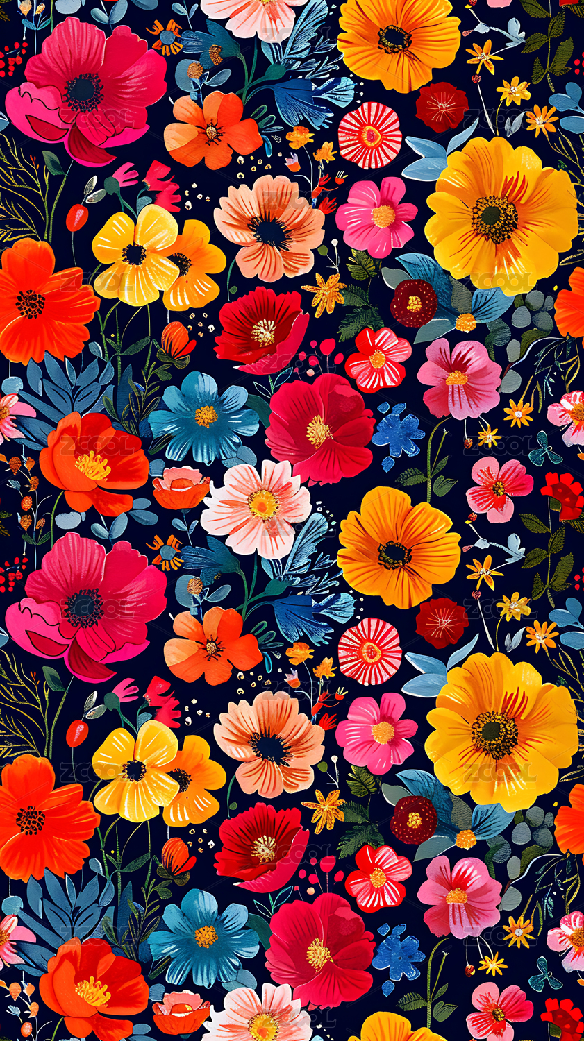 多彩花卉图案插画