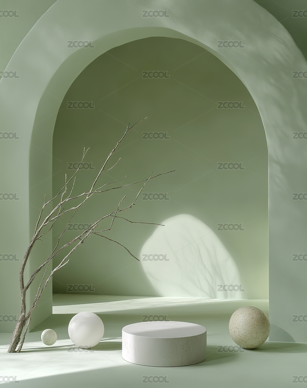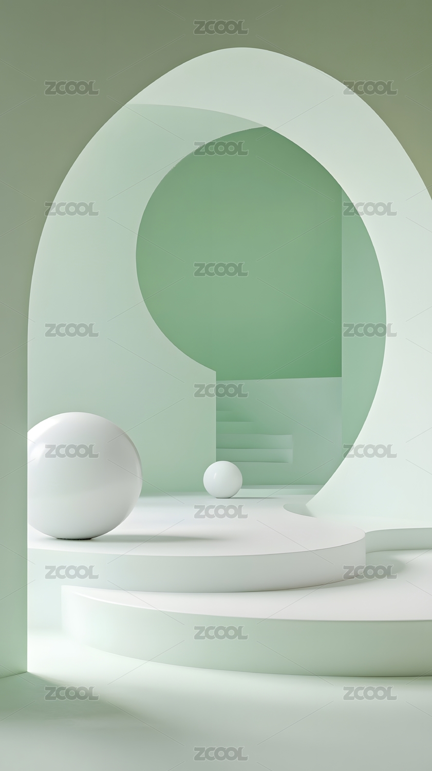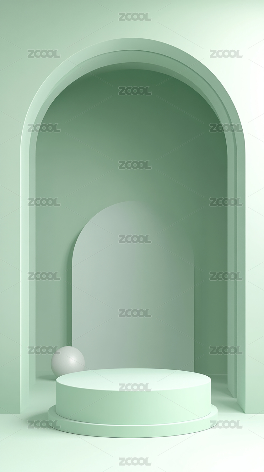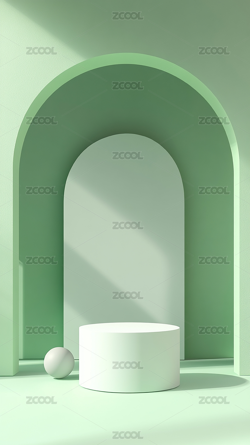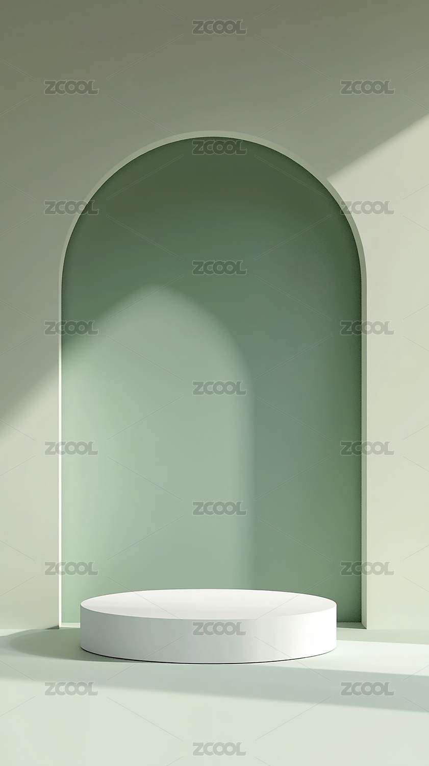简约几何展示台与柔和拱门背景