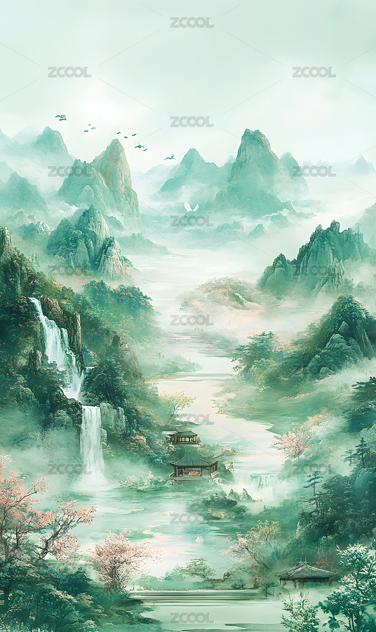 水墨丹青山水画卷意境图