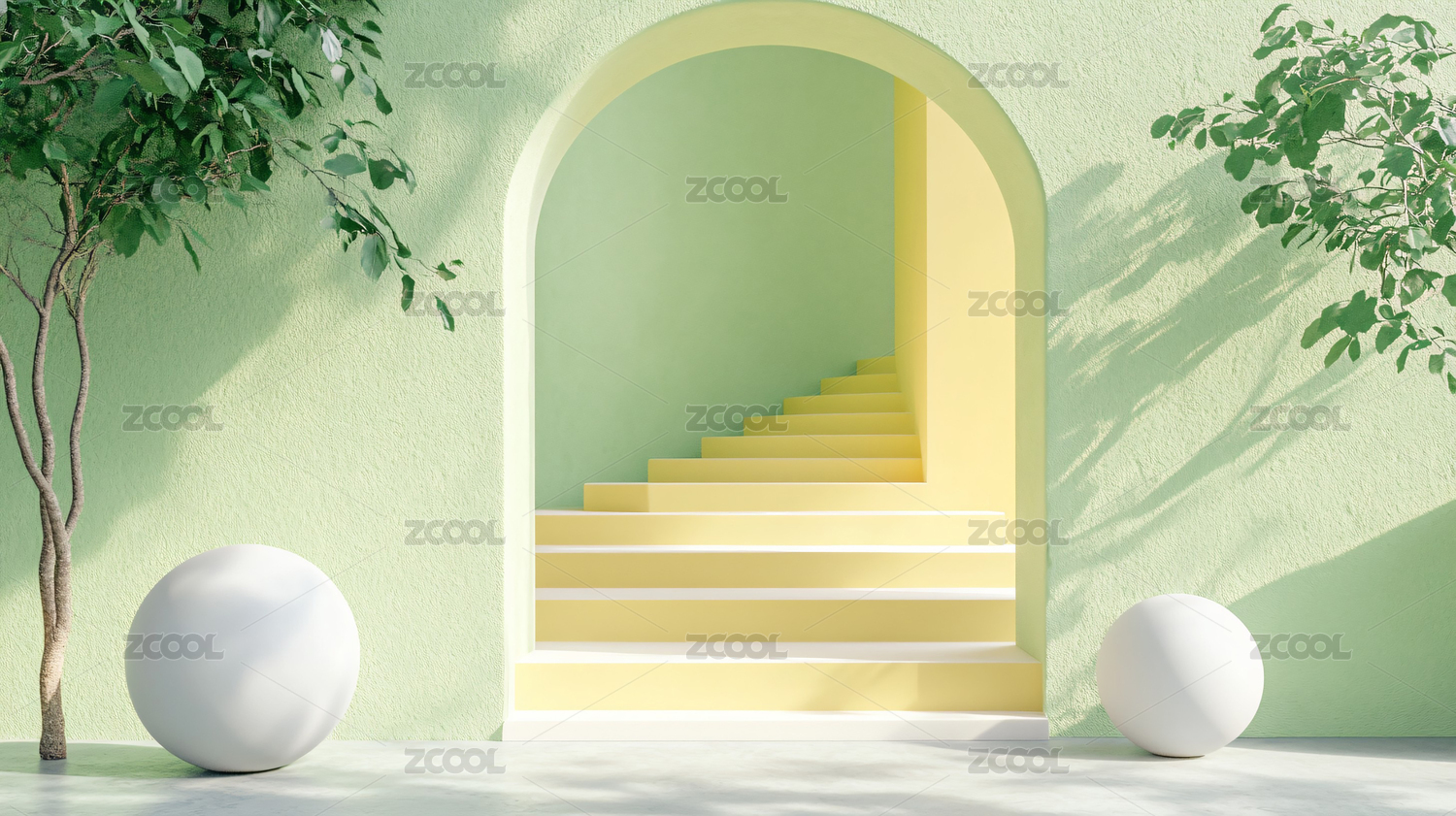 现代3d绿色室内场景