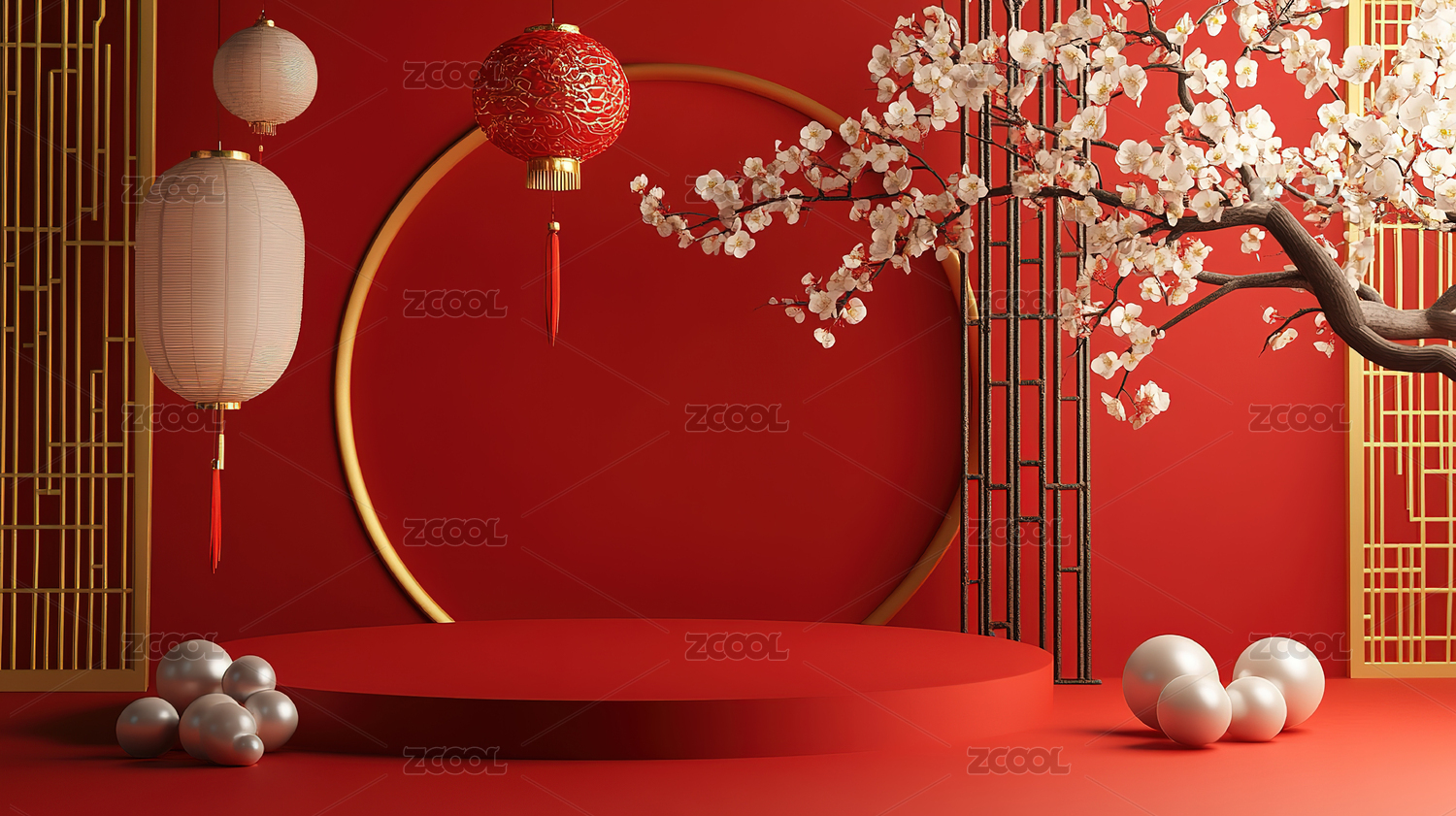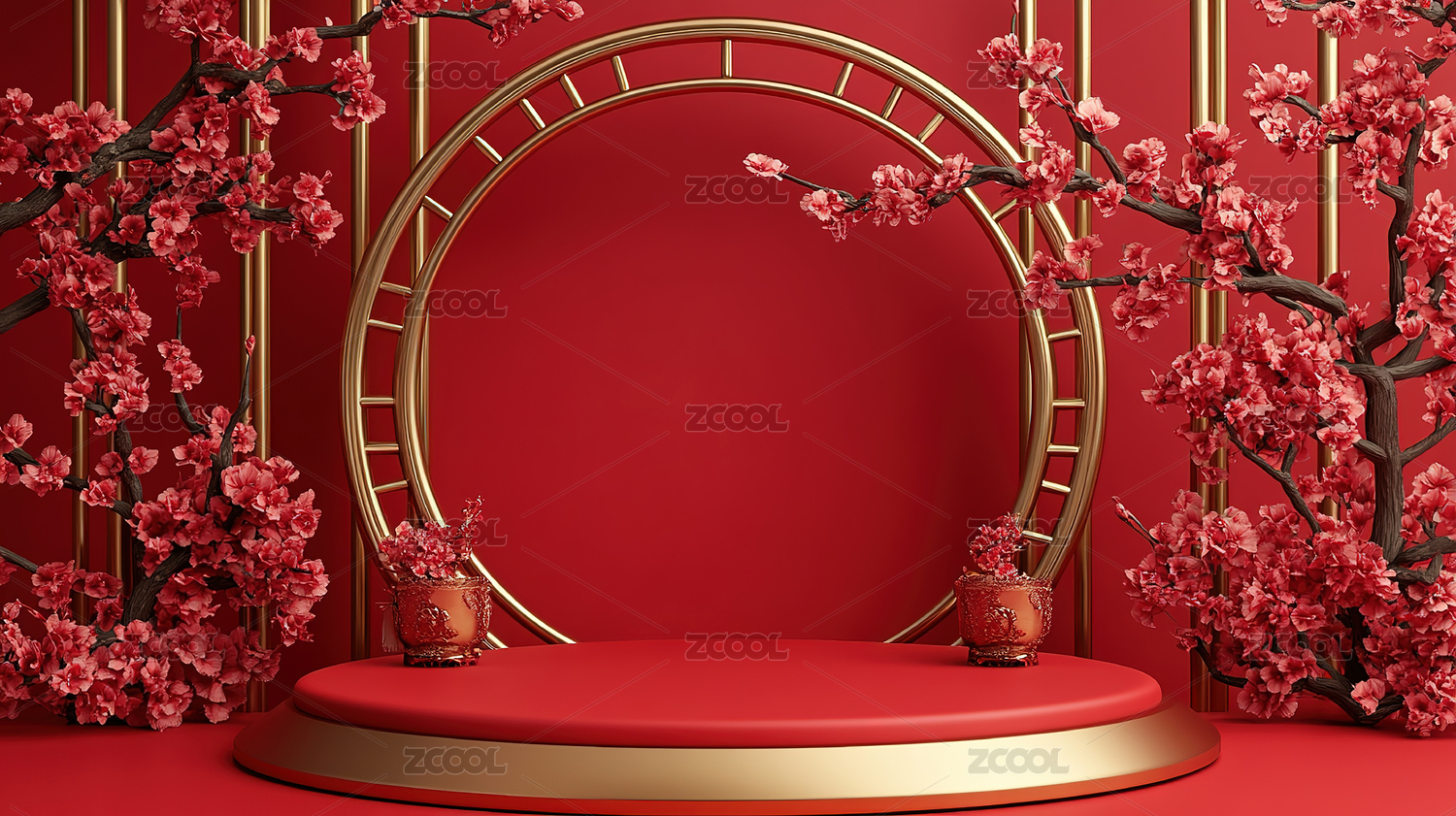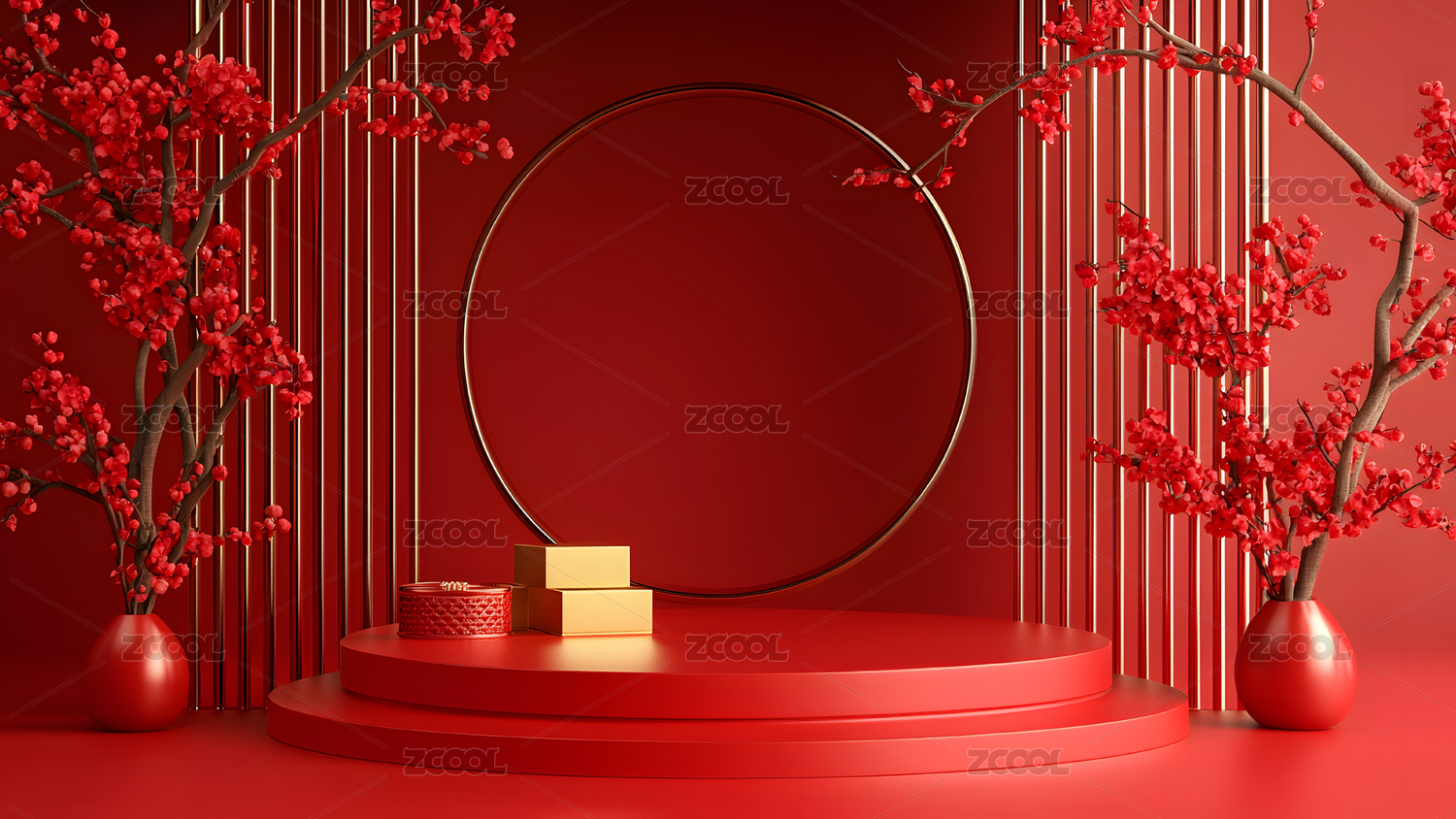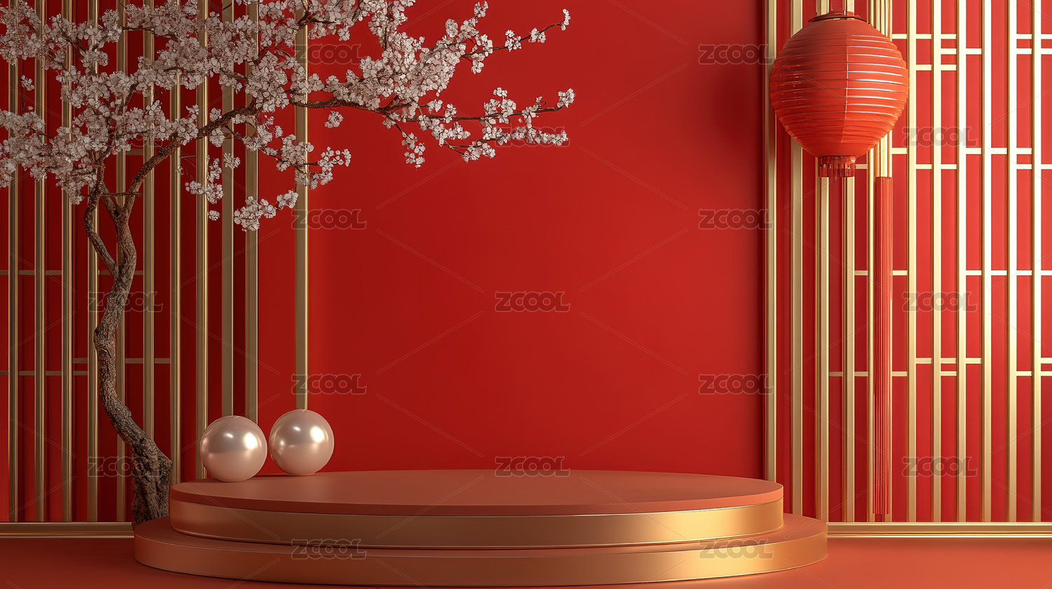 中国文化,背景,红色,节日,产品展台,装饰,新年,春节,插画,AI数字艺术