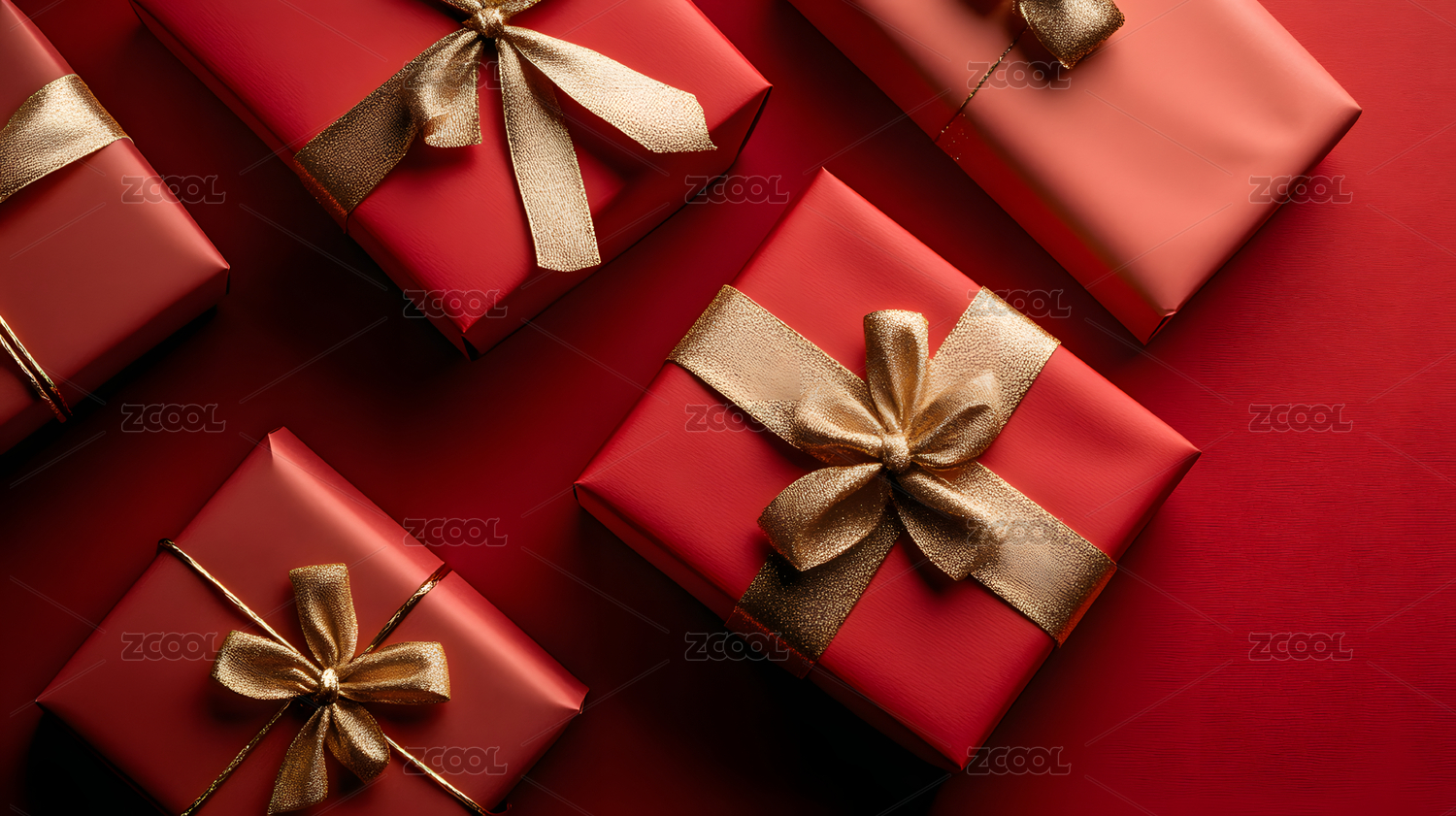 礼盒礼物盒子金色红色丝带化妆品背景海报素材