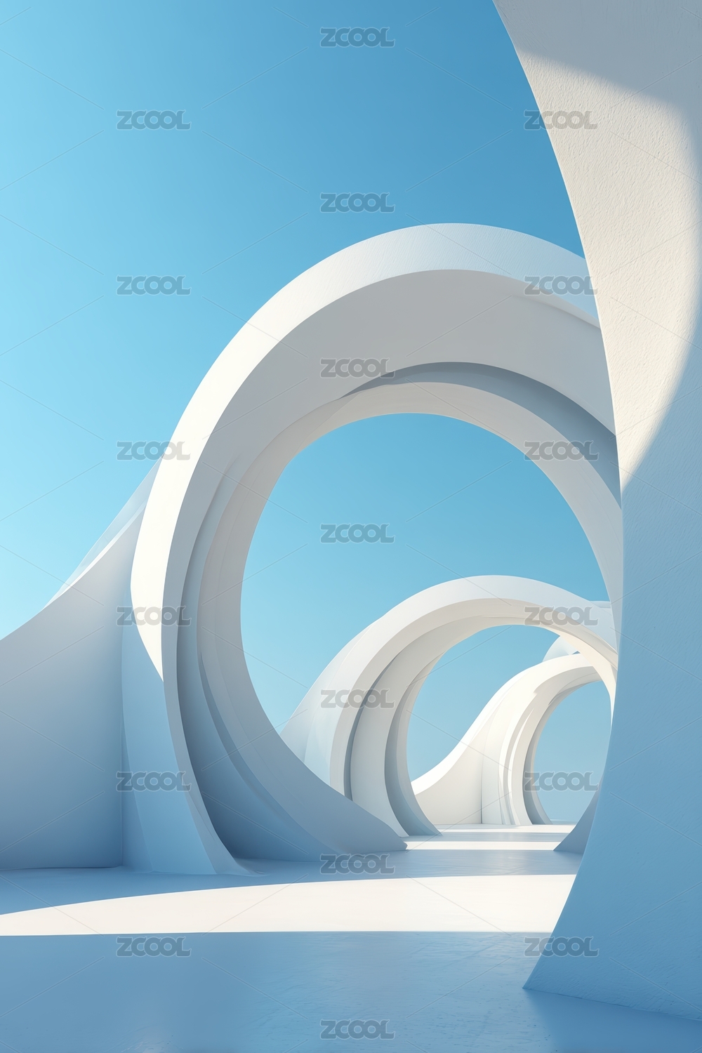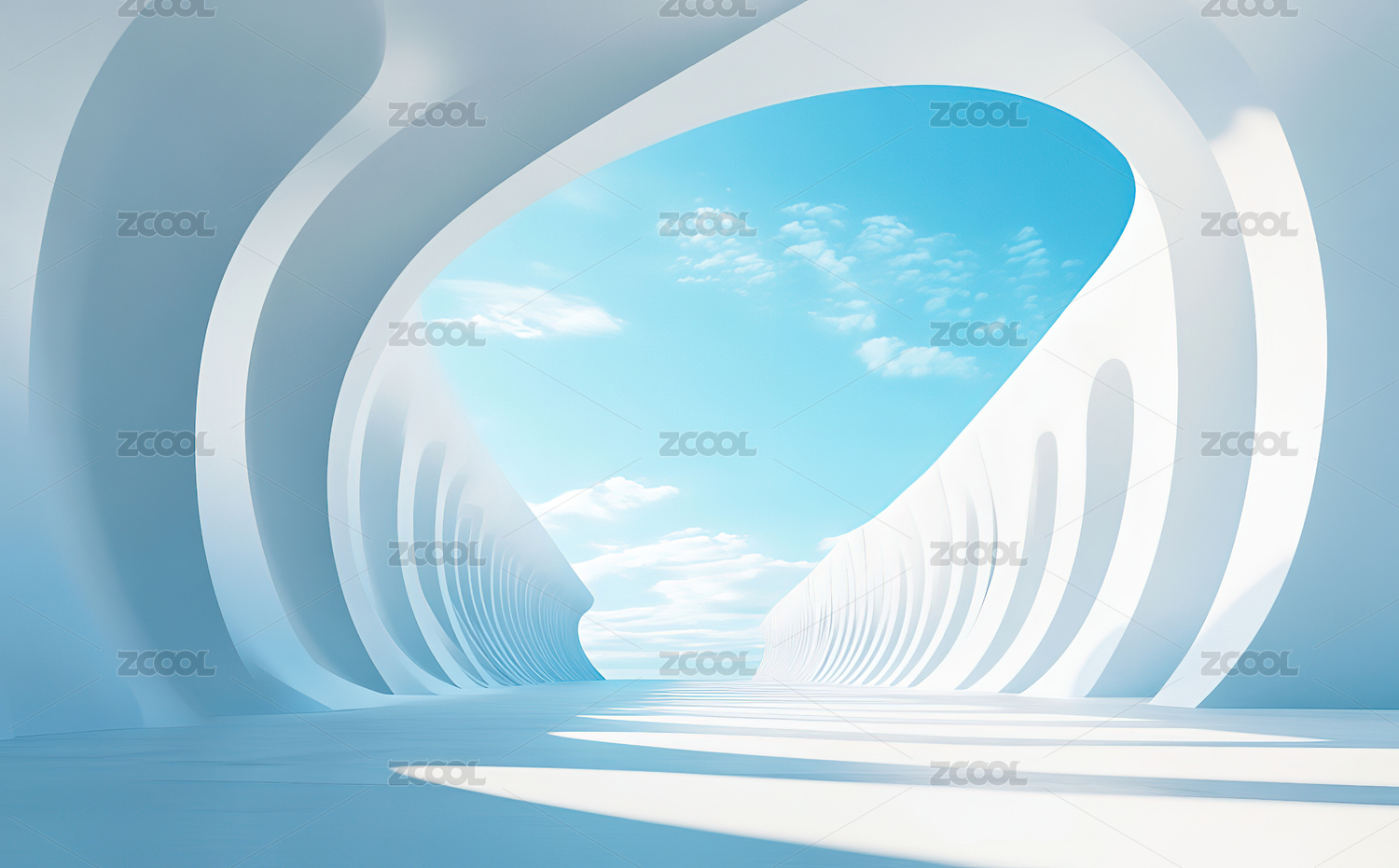 白色弧形通道与蓝天
