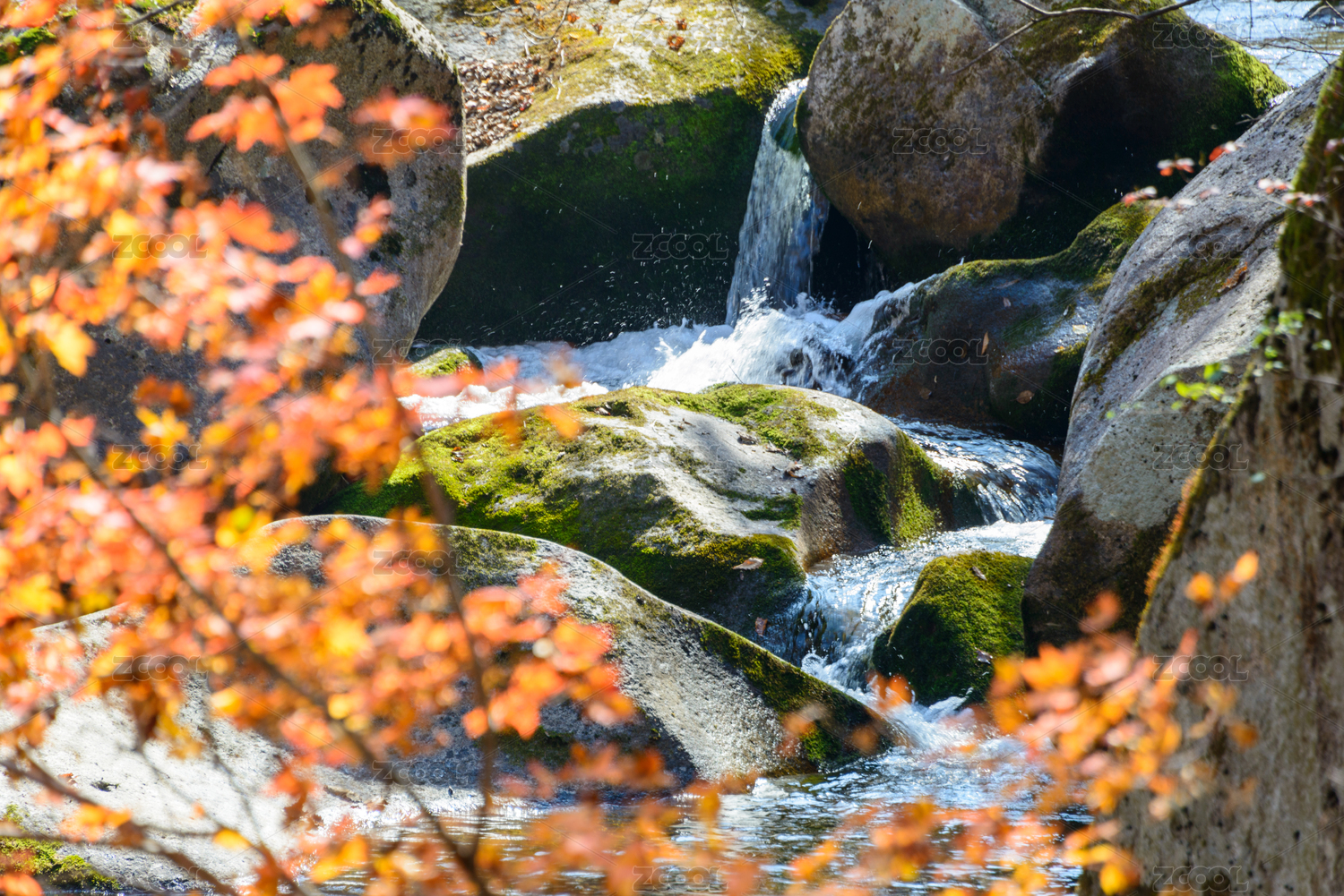 沈阳本溪老边沟,秋季枫树红叶溪流自然风光