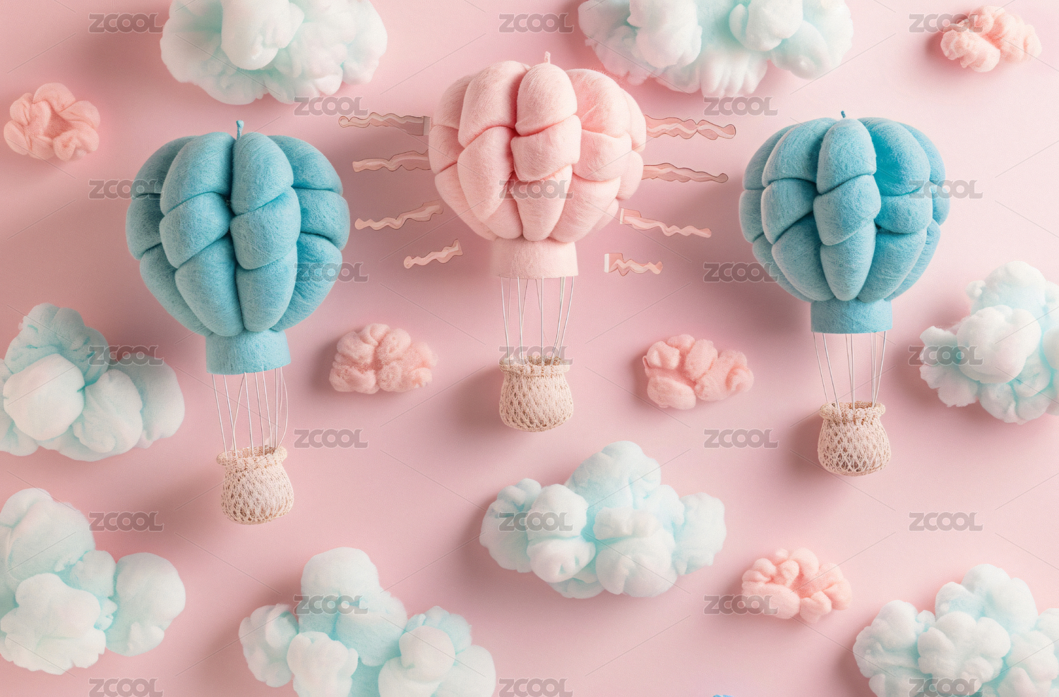 图像,元素,粉色,蓝色,复杂,装饰,气球,热气球,庆祝,浪漫