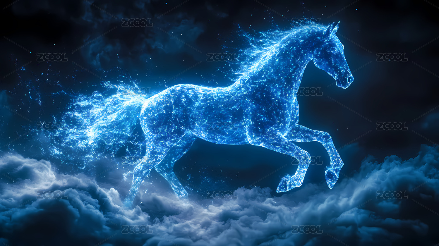 抽象科技粒子蓝色发光骏马背景