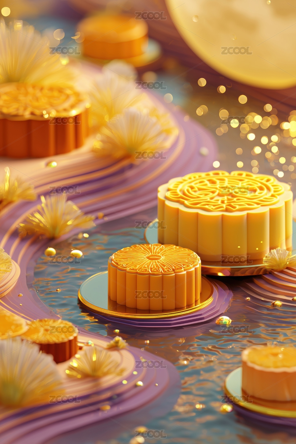 玻璃果冻质感中秋节传统月饼糕点