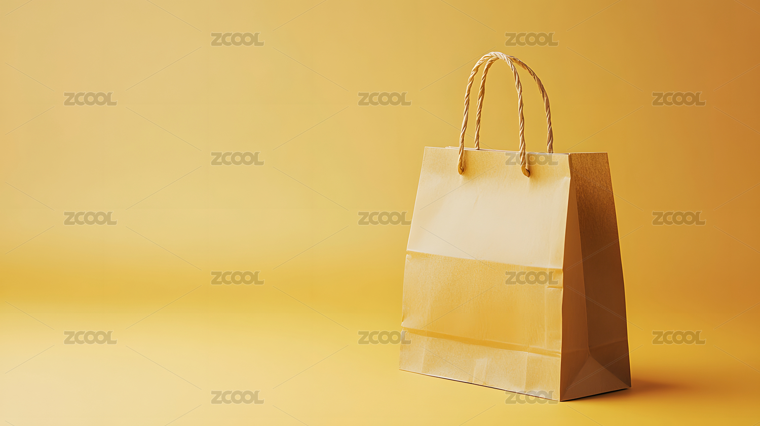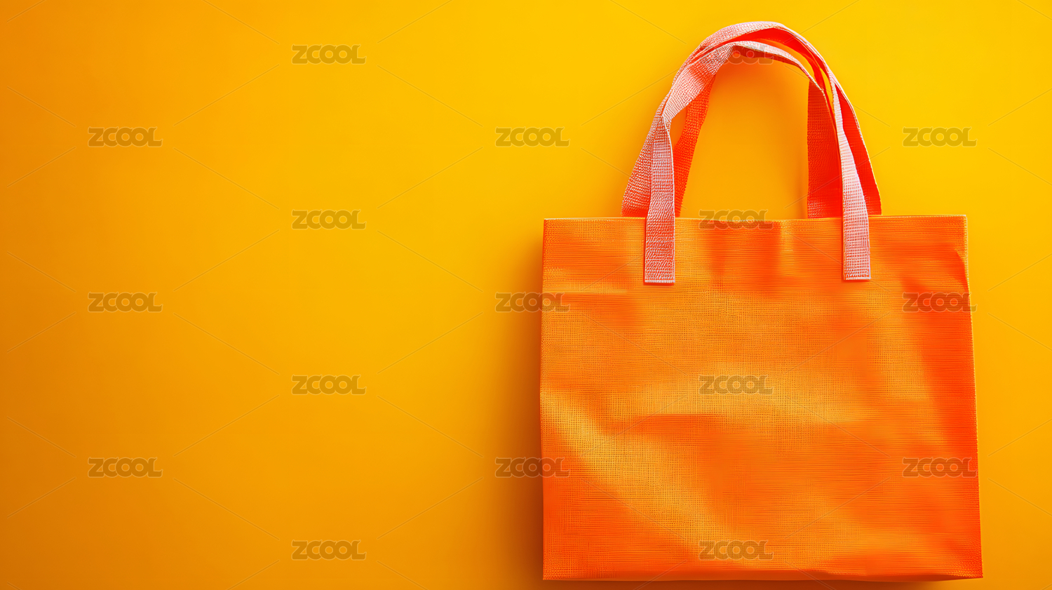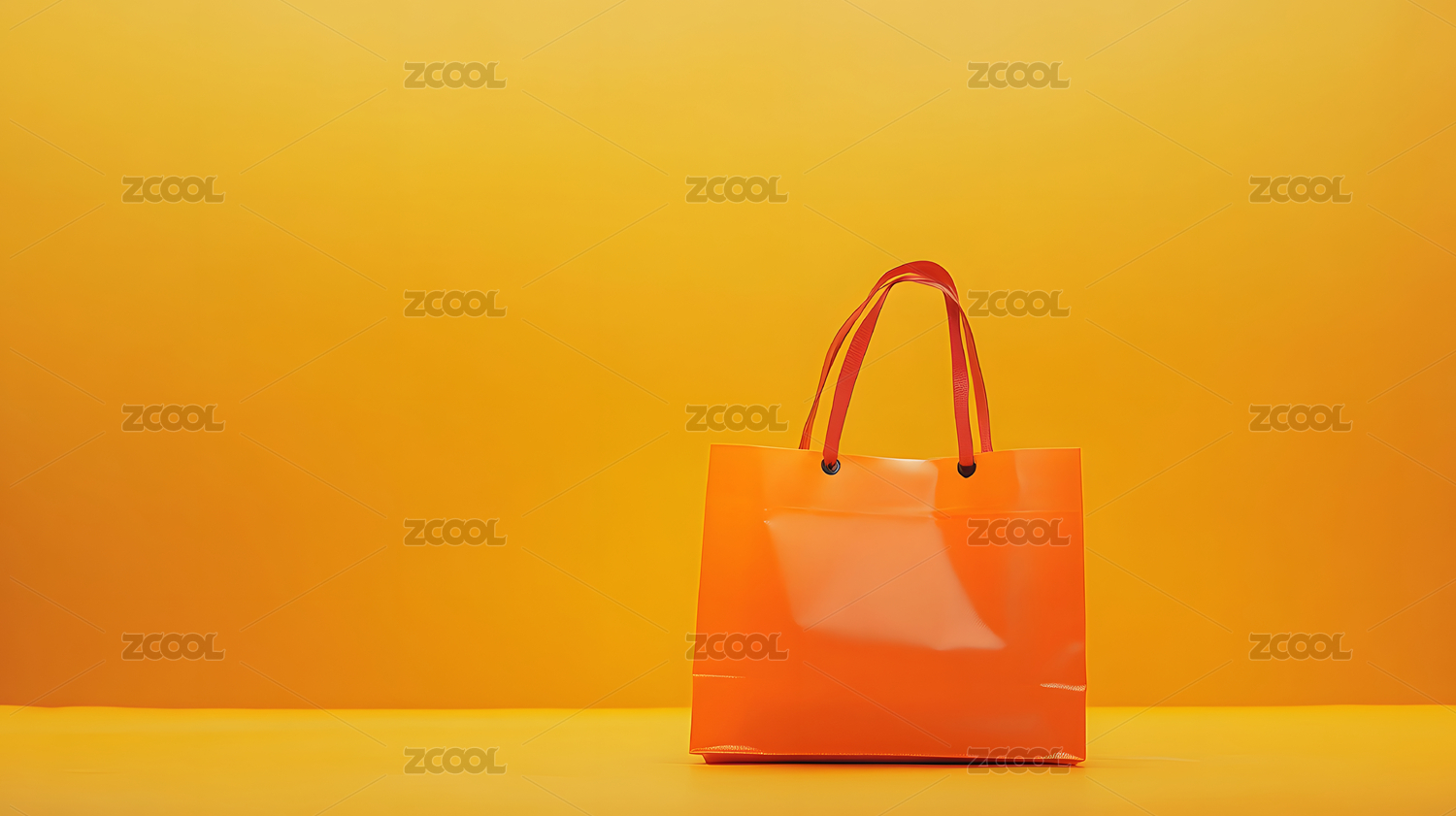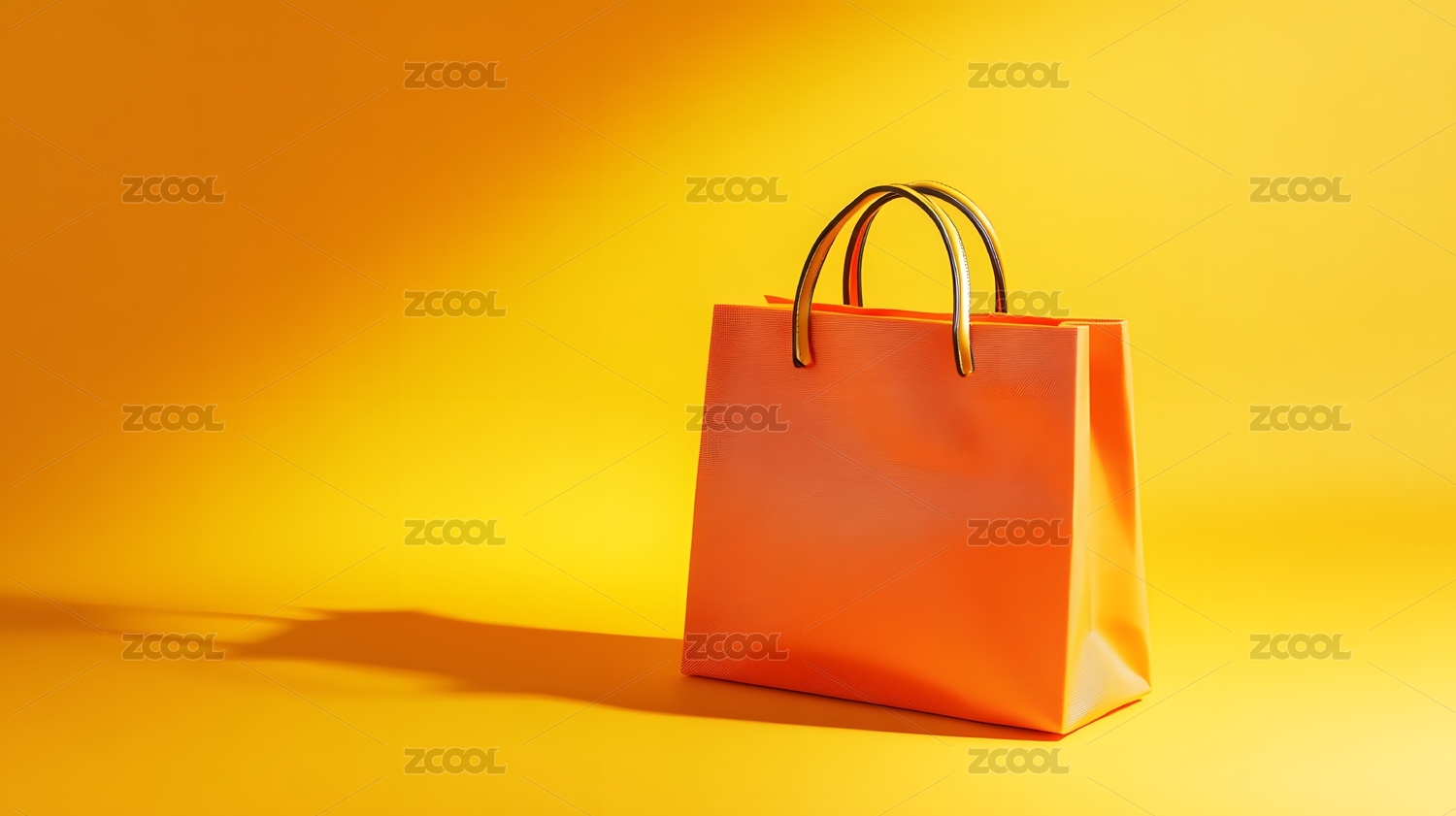 现代, 极简, 创意, 简约, 光滑,购物袋, 橙色, 黄色, 背景, 商业