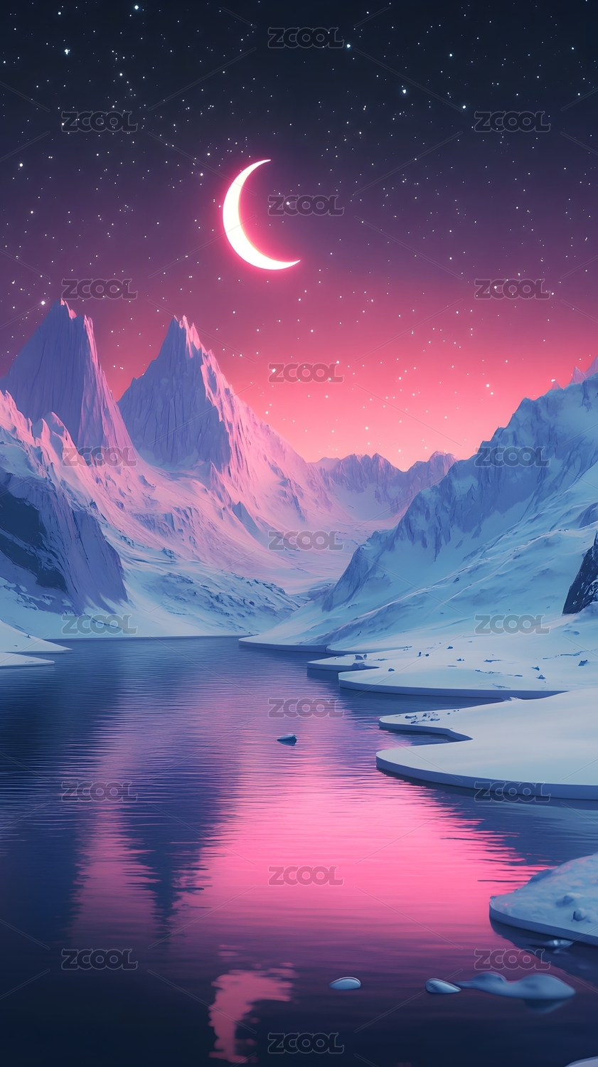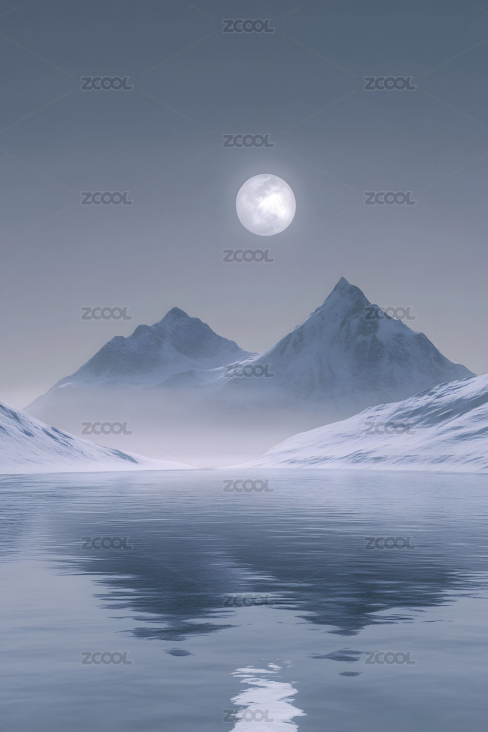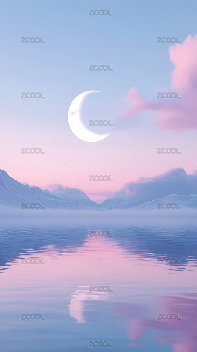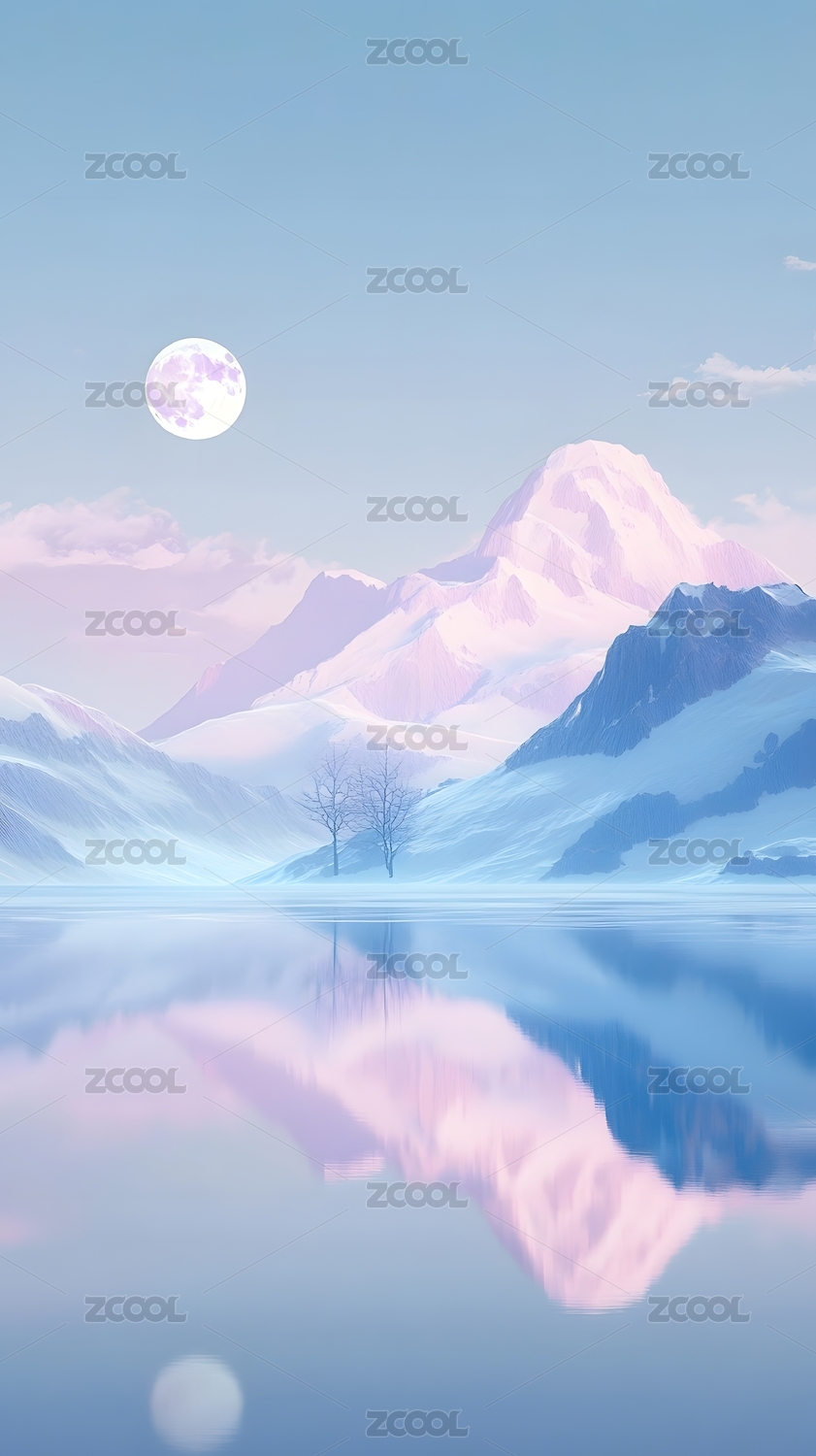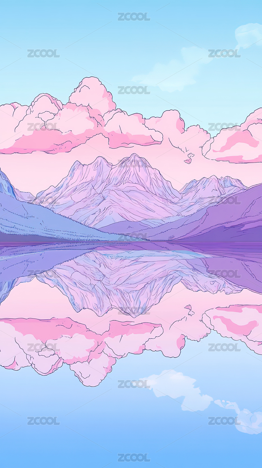 山和湖风景插画抽象艺术装饰画手机端海背景