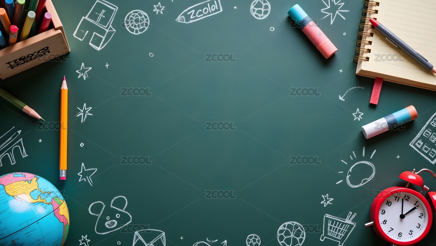 学习用品与黑板背景