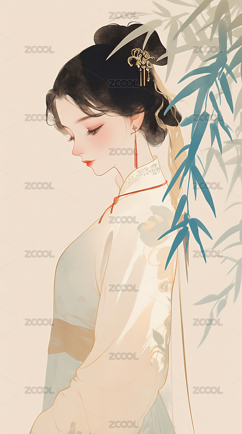 竹林中的古典美人