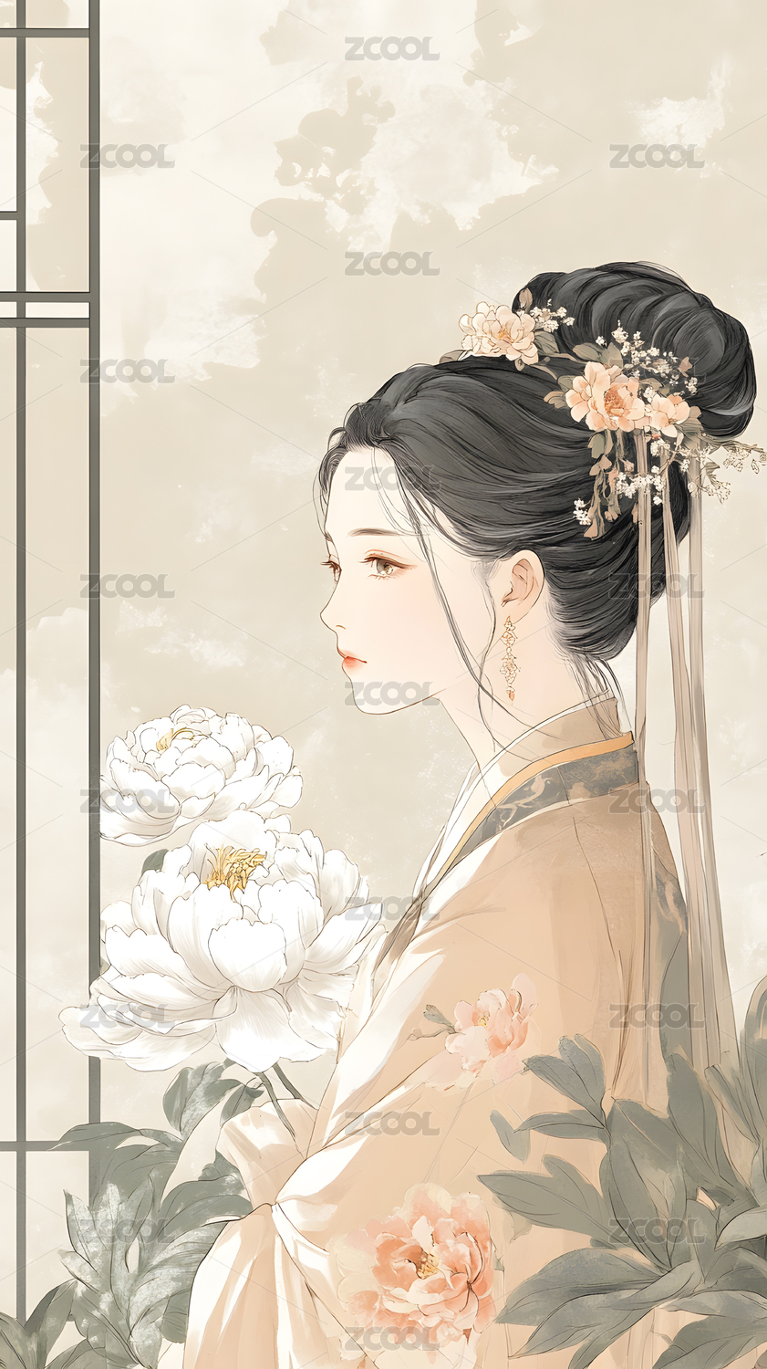 古典美人侧脸花饰点缀