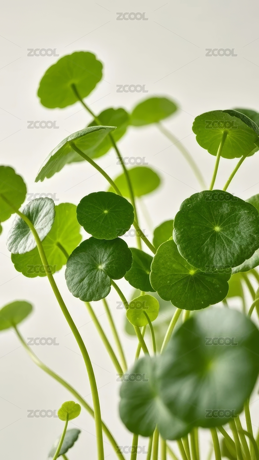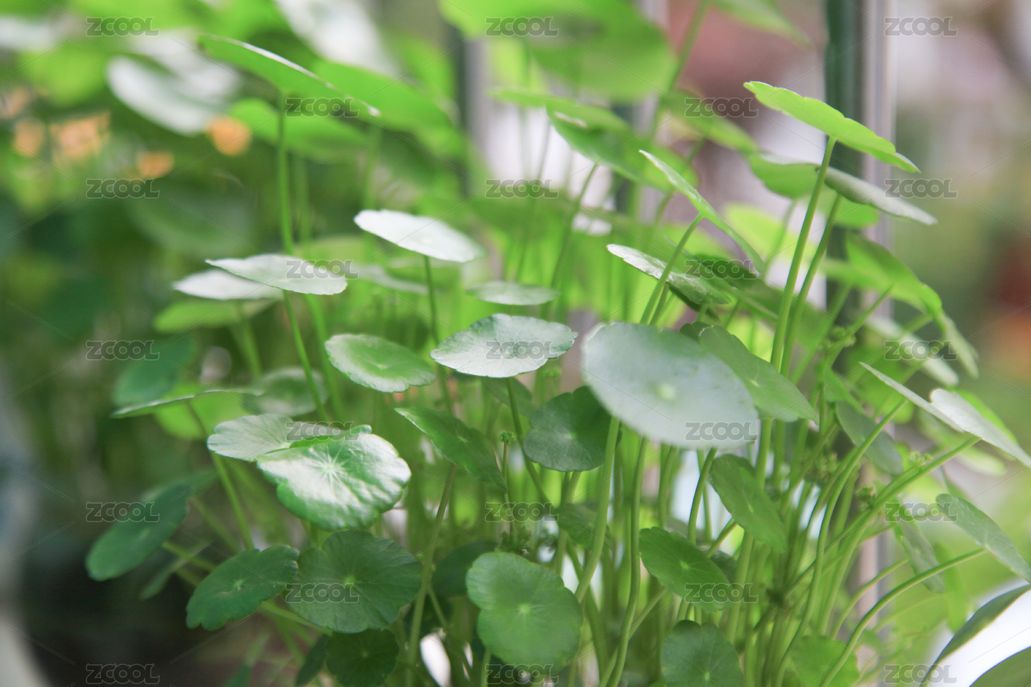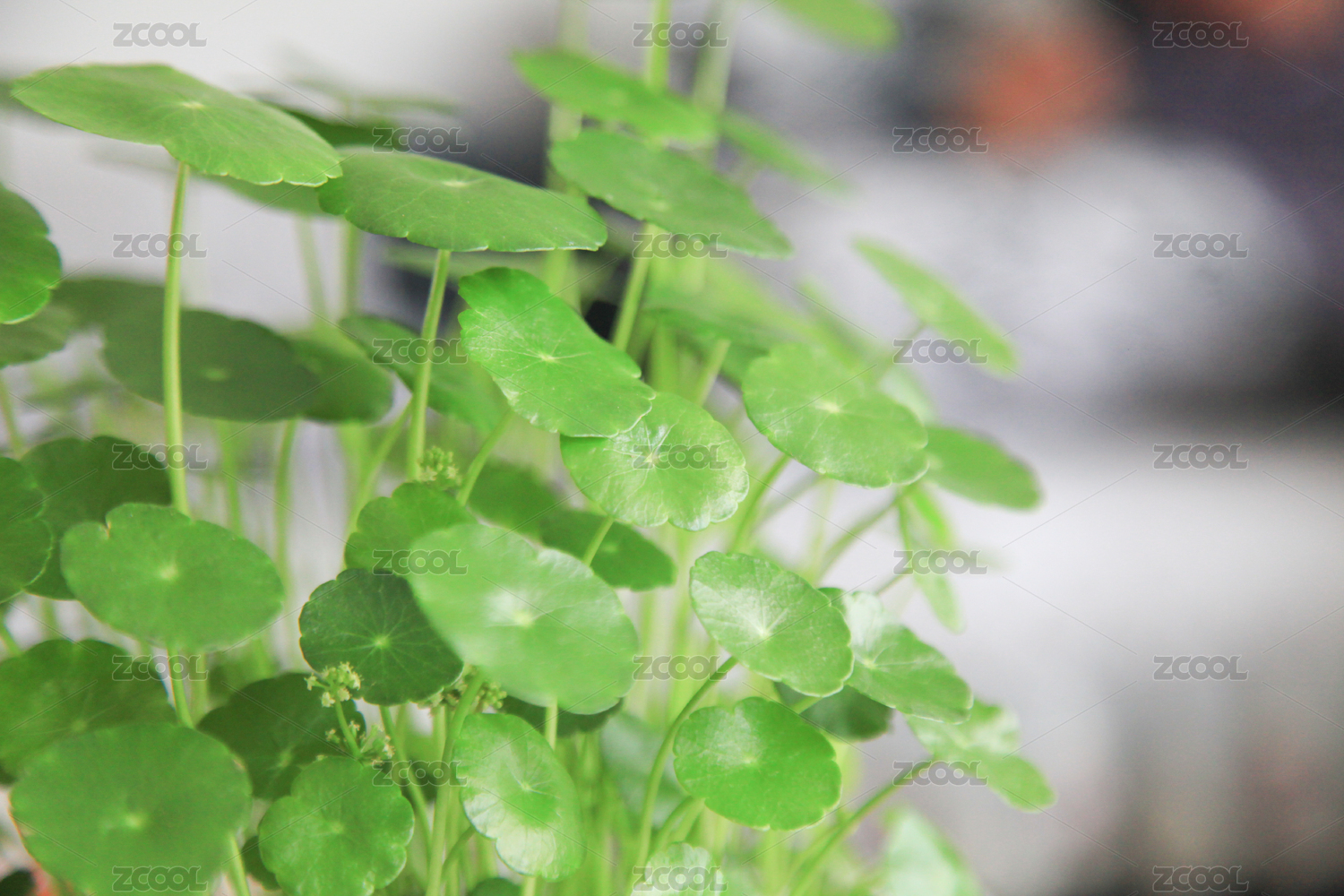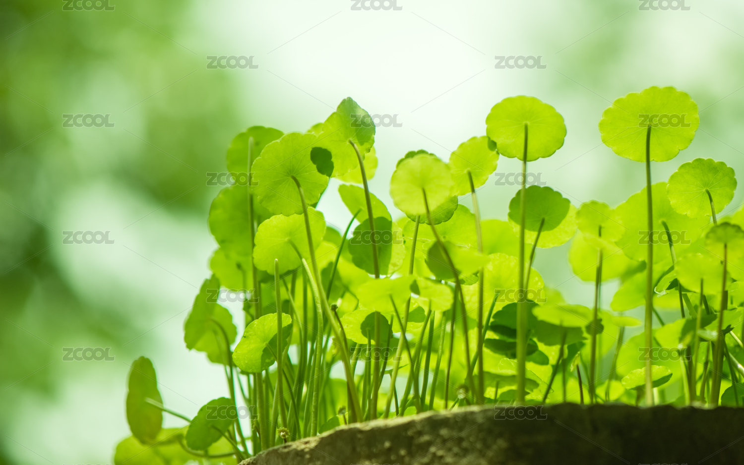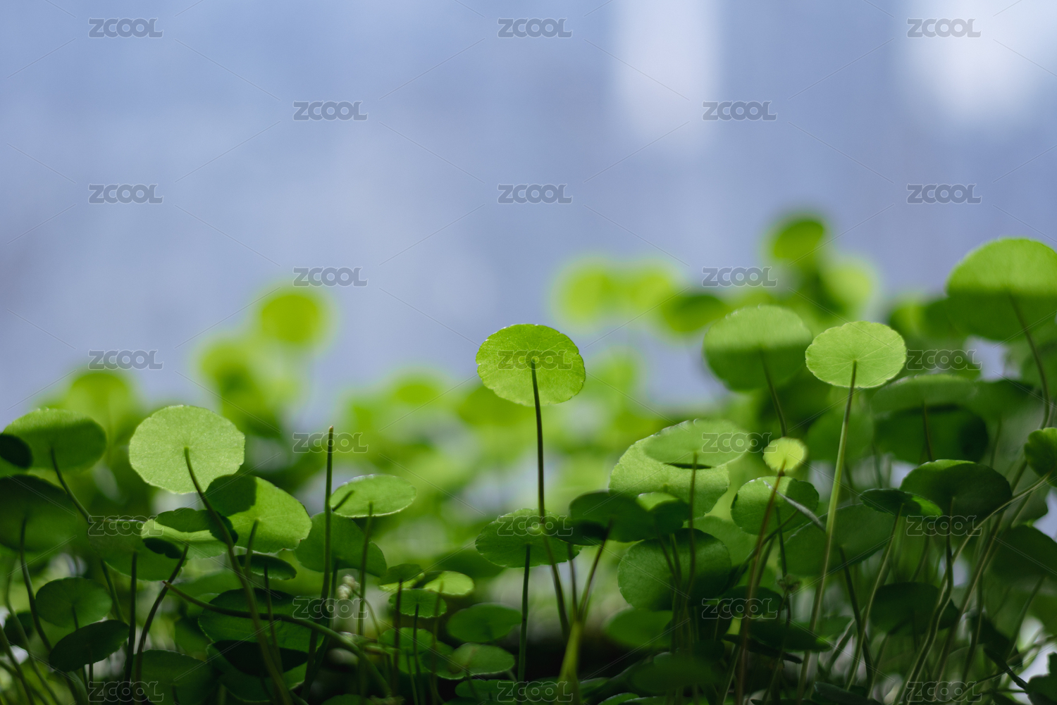 早晨阳光里,铜钱草绿色植物自然清新背景