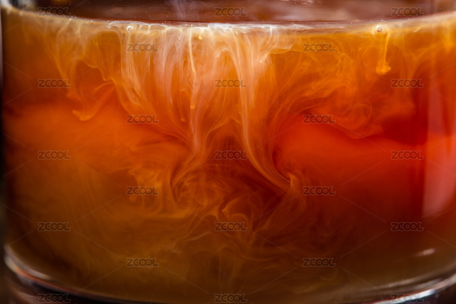 与牛奶混合形成不规则抽象纹理的黑咖啡