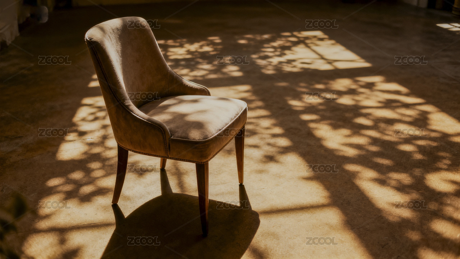 一把橘黄色座椅放在铺有深蓝色桌布的餐桌前