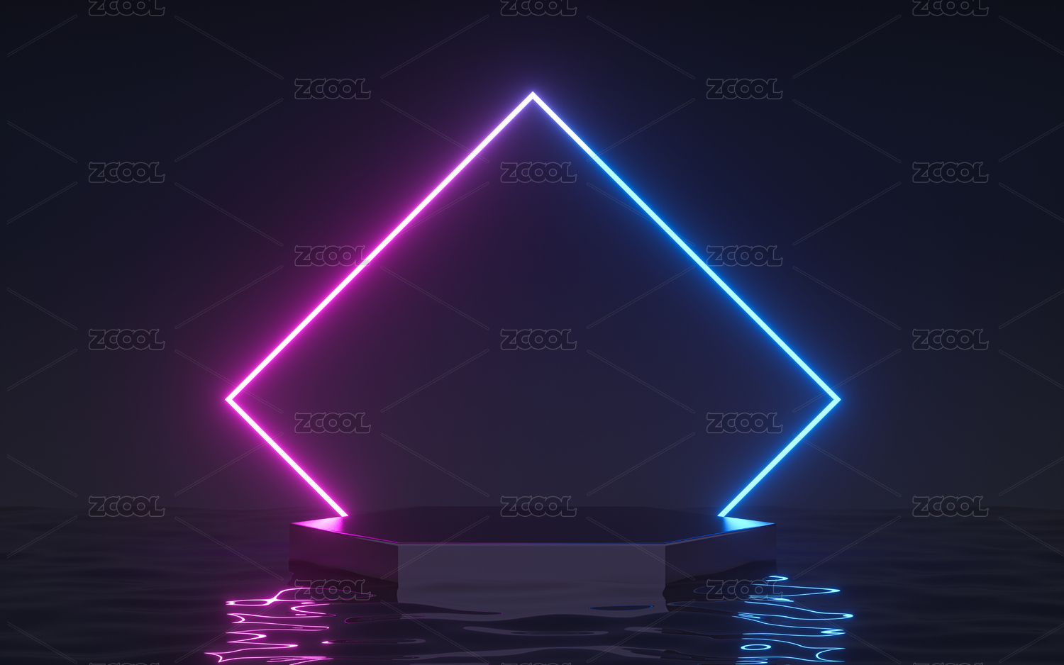 不同几何形状的五彩斑斓的舞台霓虹灯背景素材