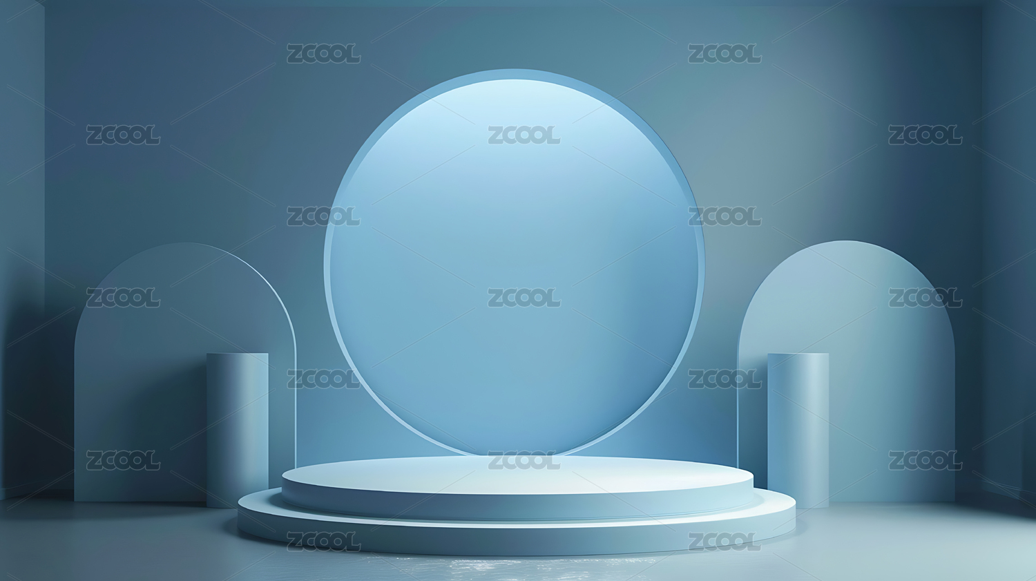 蓝色空间中的圆形展台
