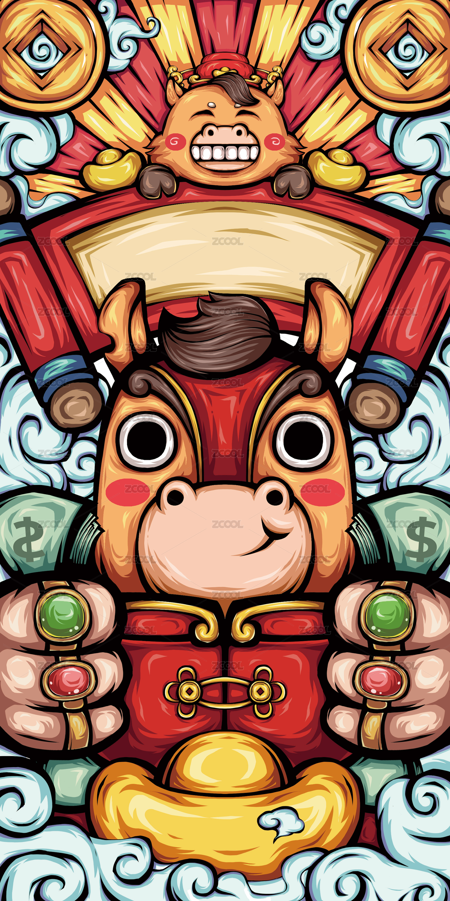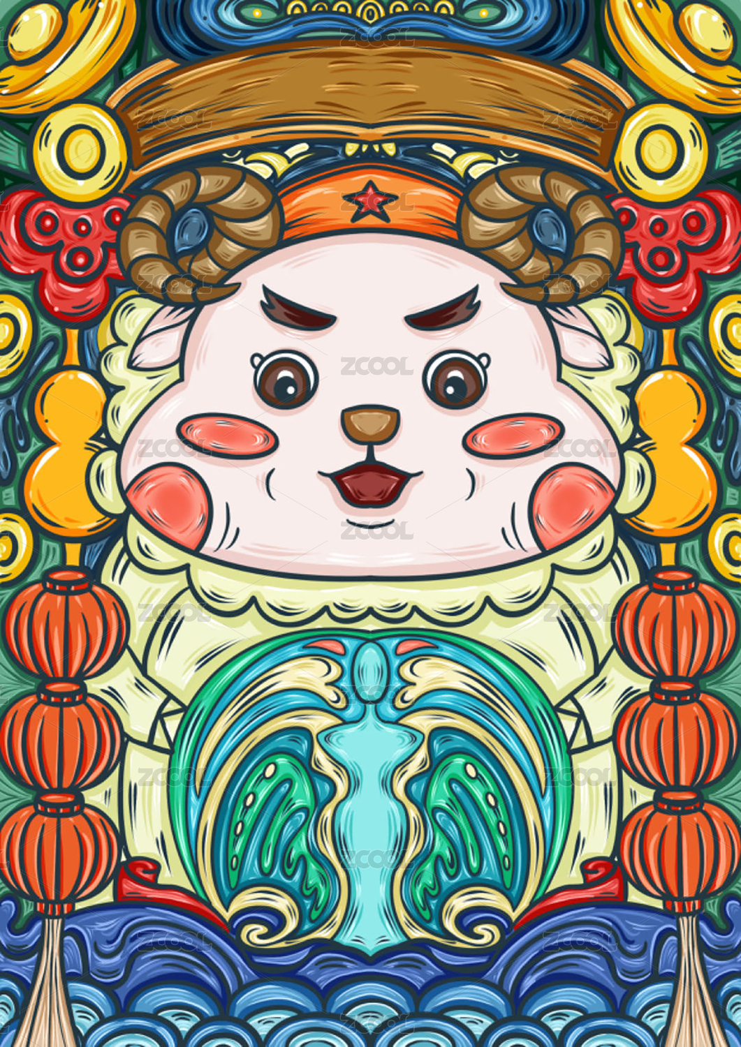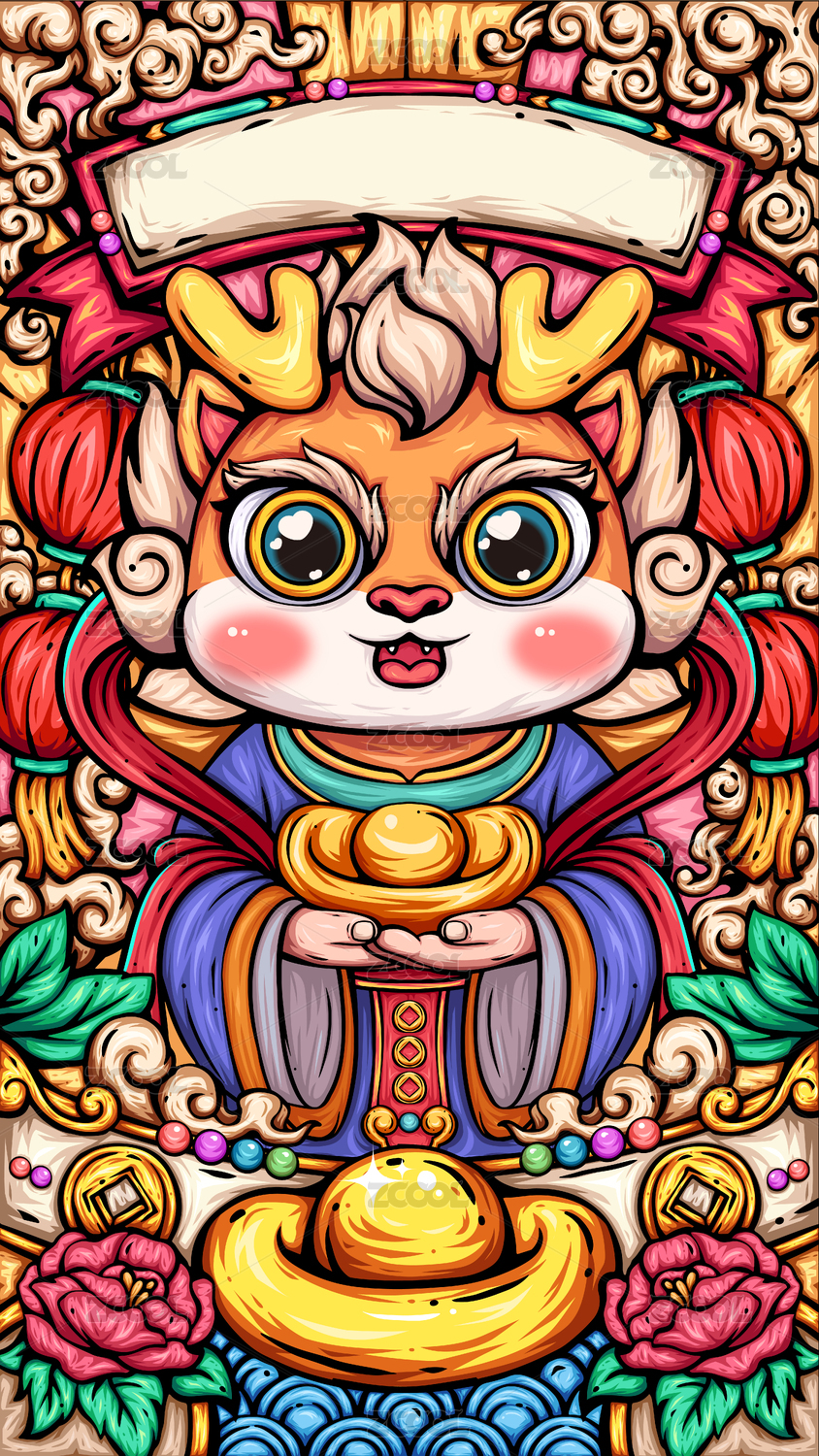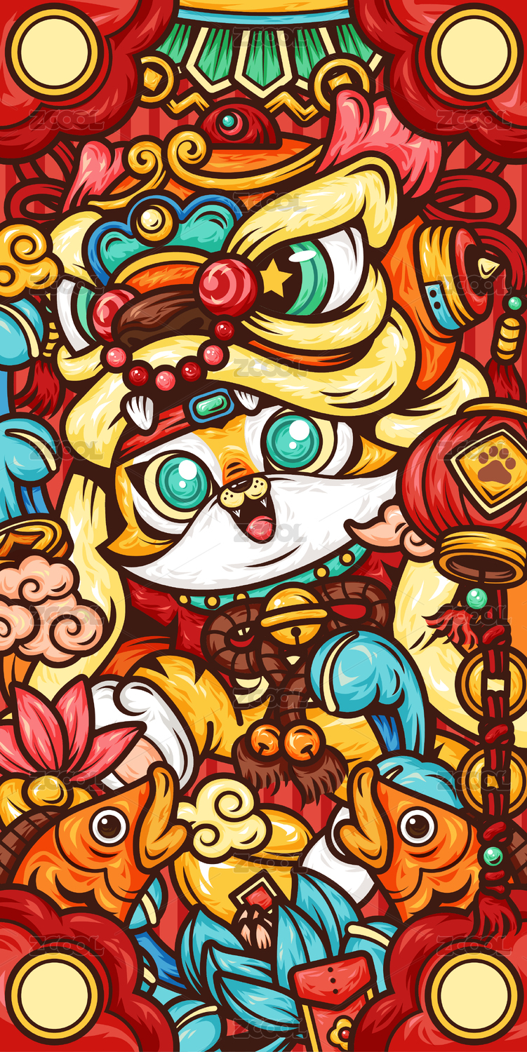 国潮可爱卡通舞狮老虎福禄寿吉祥矢量插画