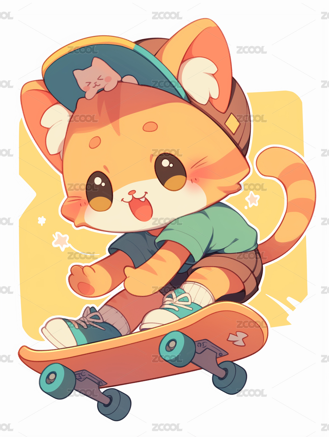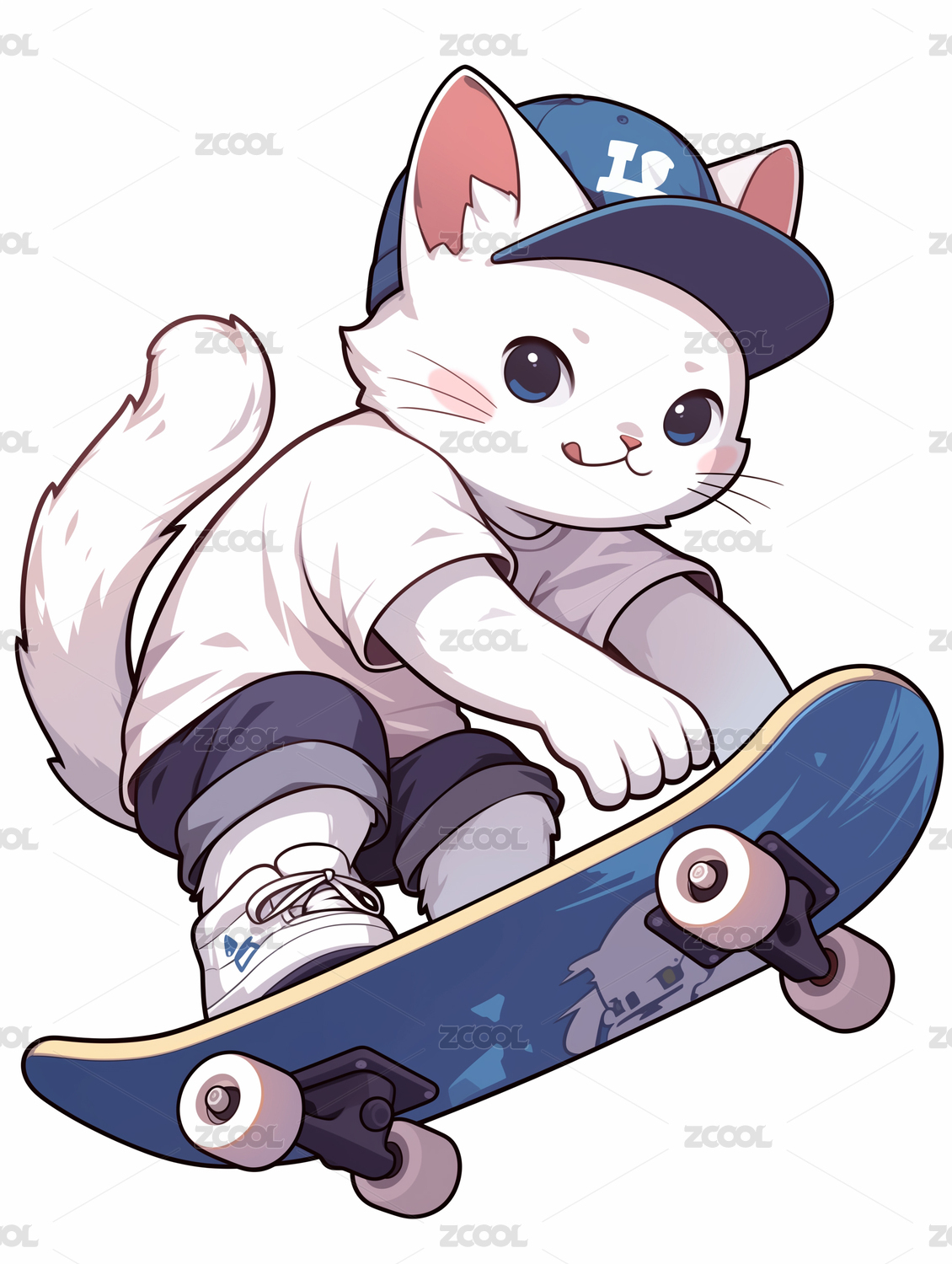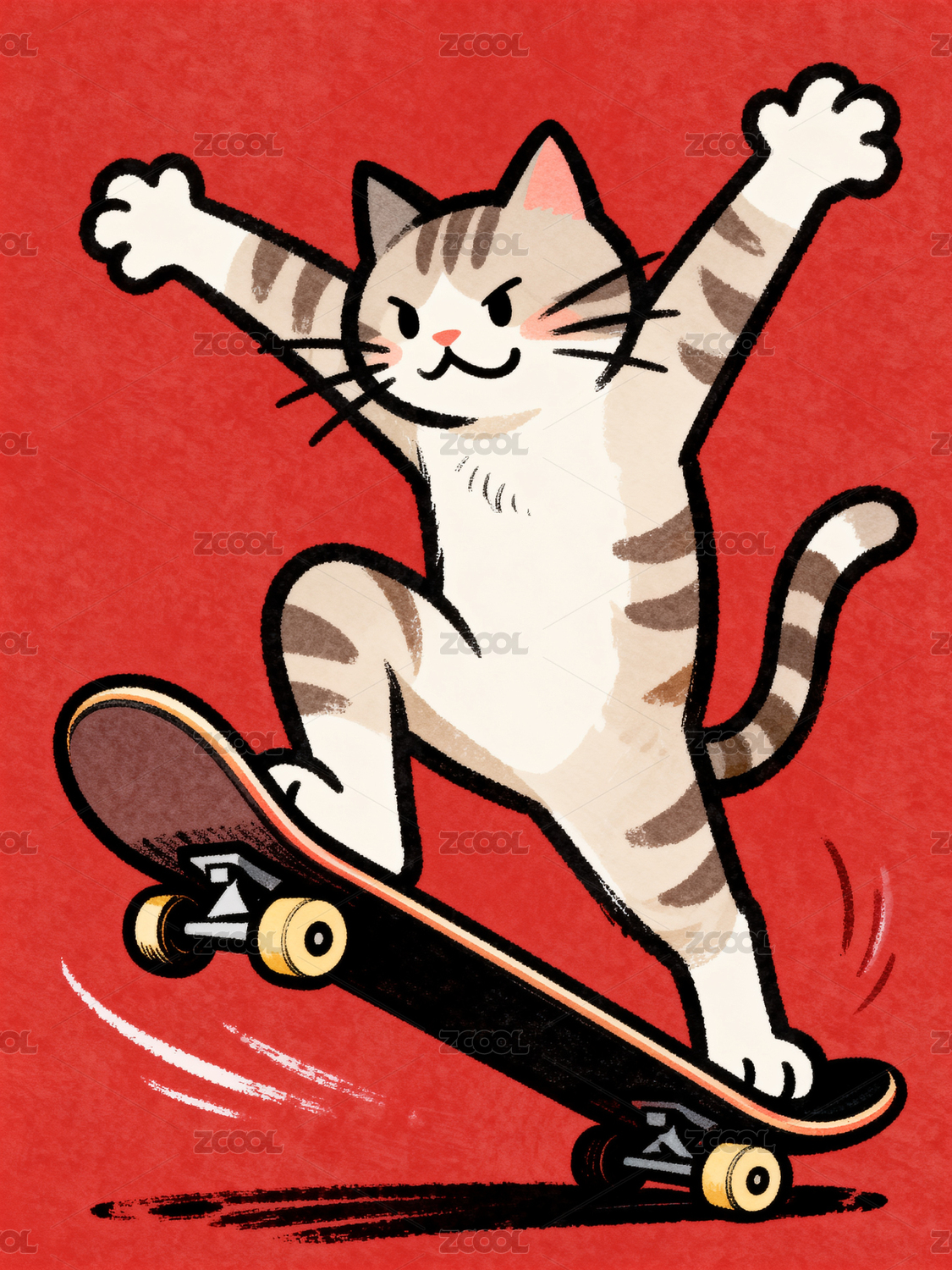 猫,滑板,运动,卡通,萌宠,轮子,滑轮,跑步,健身,体育