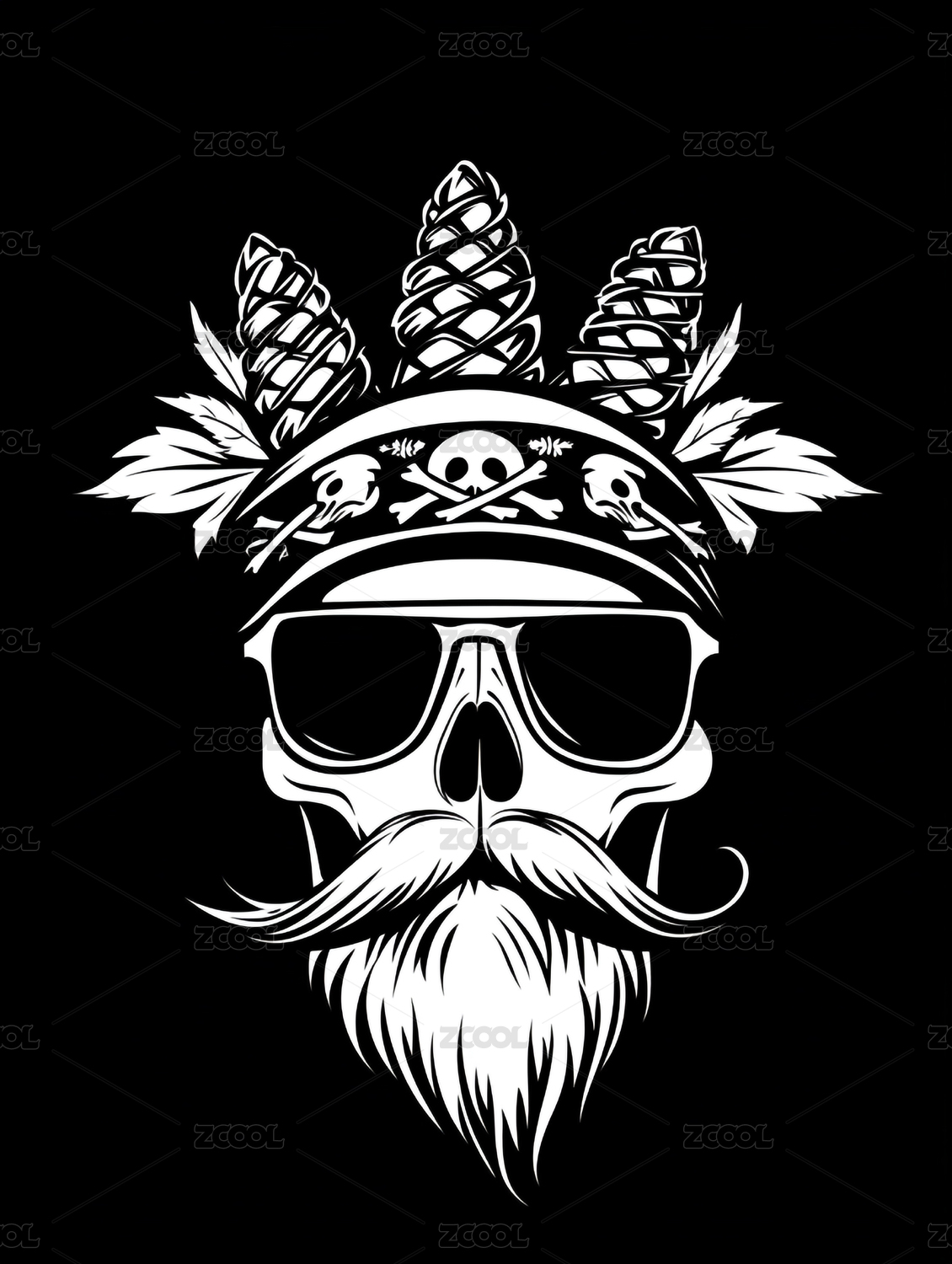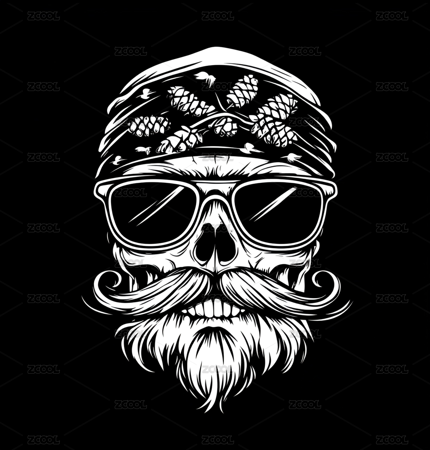 复古暗黑风格戴着头巾和墨镜的骷髅形象