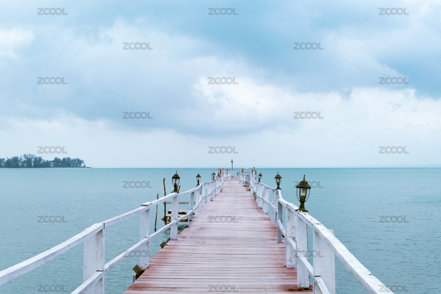 中国山东威海荣成市傍晚时分海边的木制的栈桥